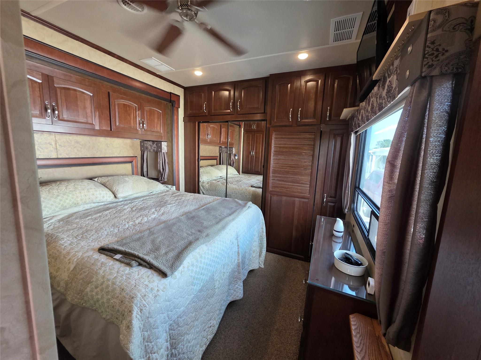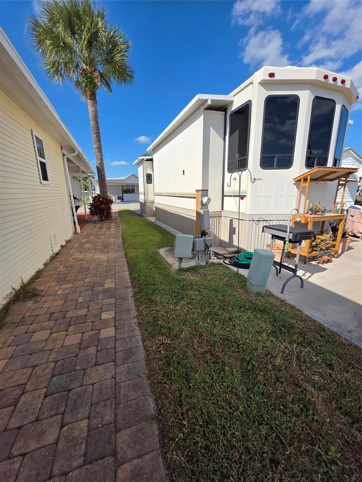 Waterfront home has the affordable ambiance you want in Waterfront Living ! Enjoy Florida living in this premium 2014 Forest River Cedar Creek Cottage RV, perfectly positioned on a canal-front lot in a 55+ friendly gated community. Provides a comfortable full-time or seasonal living — a spacious king bedroom, stackable washer & dryer, a fully equipped kitchen with Island, dishwasher, central vacuum system-Media Center, Lots of Cabinets & Storage. Your paver brick patio overlooks the tranquil canal & landscape. The lot features an electrified shed, paver-trimmed concrete pad, and easy upkeep. Community Amenities Include: Heated saltwater pool-Clubhouse-Pickleball courts-shuffleboard-cornhole-pool hall-Dog Parks. Paved Streets, Marina, boat ramp & Docks with access to Lake 0 & Much more