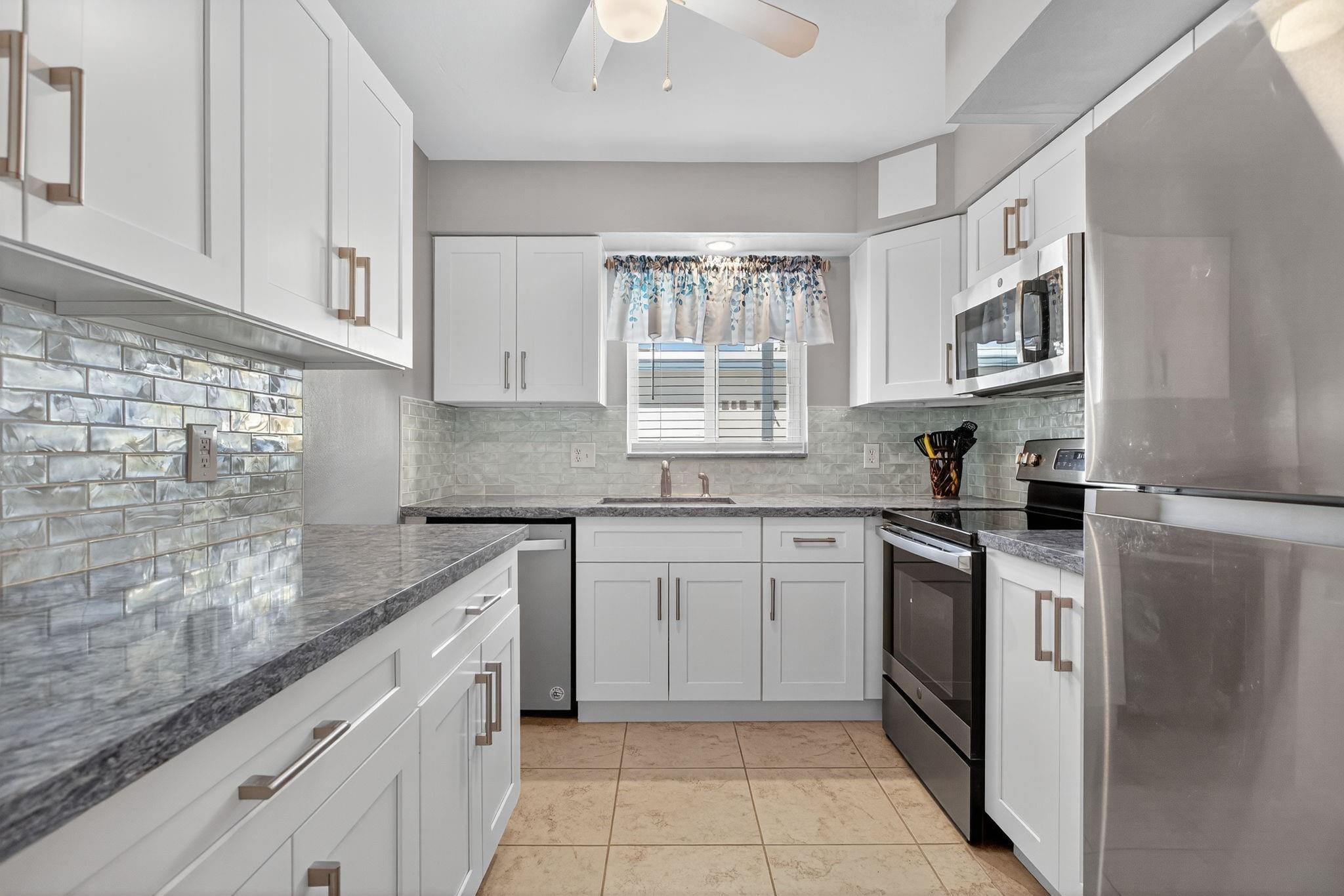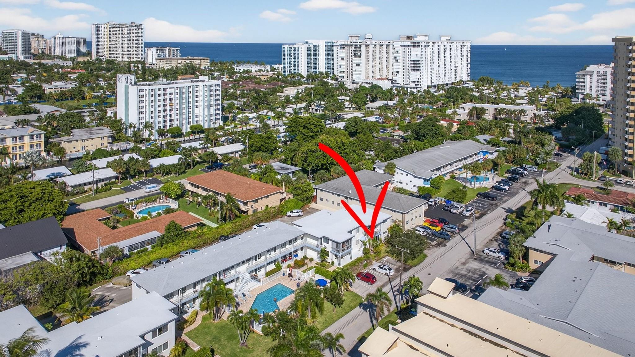 Pretty in Pompano-the place to be with your PET! Remodeled: New Roofs (2024), remodeled pool (2024), Hurricane windows & doors in the entire complex, all sewer pipes replaced & nicely maintained exteriors! Certified 10 year inspection received 2024. Unit features: new mini-split air conditioners (2024), new electrical panel box (2024), fresh and fun beach vibe kitchen with new cabinets, counters & stainless appliances! Both bedrooms have it's own bath & both baths have been replaced-very classy with nice vanities & pretty tile. Uniform tile flooring throughout makes it easy to maintain. This is a corner unit with a private entrance-Welcome Home! Back door exit to patio area is steps to laundry room-talk about convenience! Walking distance to the beach, beautiful parks & the Water Taxi!