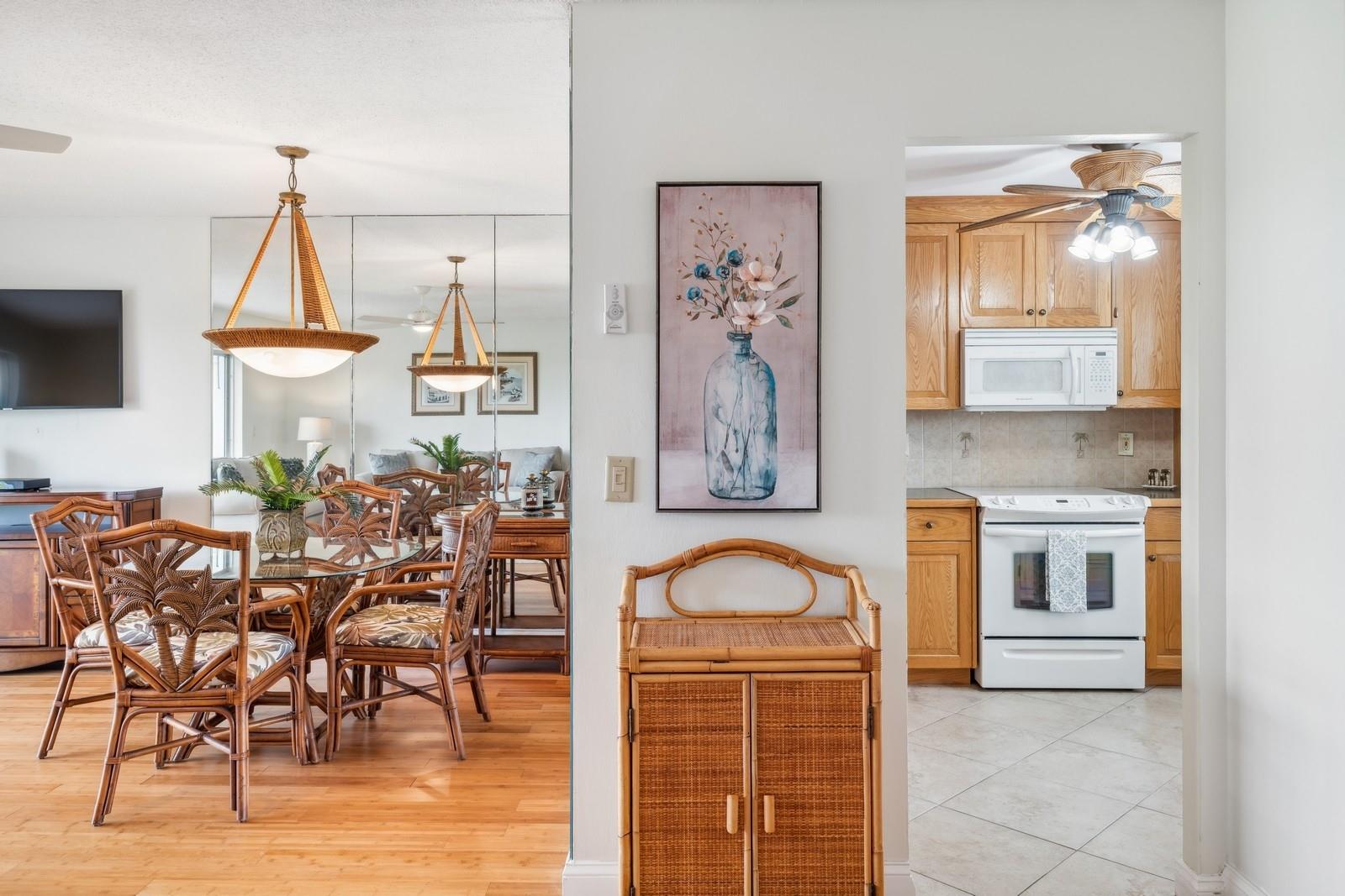 Move-in ready 2-bedroom, 2-bath condo in a peaceful 55+ community, perfect for year-round living or your home away from home. Enjoy your morning coffee from the 5th-floor balcony overlooking tropical views of the Greg Norman–designed Shell Bay golf course (not part of Fairway Royal but what an added bonus!). Condo offers large bedrooms, generous closets, stylish bamboo flooring, a remodeled primary bath, and upgraded lighting and ceiling fans. Impact windows in bedrooms and kitchen, accordion shutters on the patio. Building entry boasts new doors and Smart Home intercom system for guests and residents. The building also features a newer elevator for added comfort and convenience. The 50-year recertification has been paid in full by the seller.