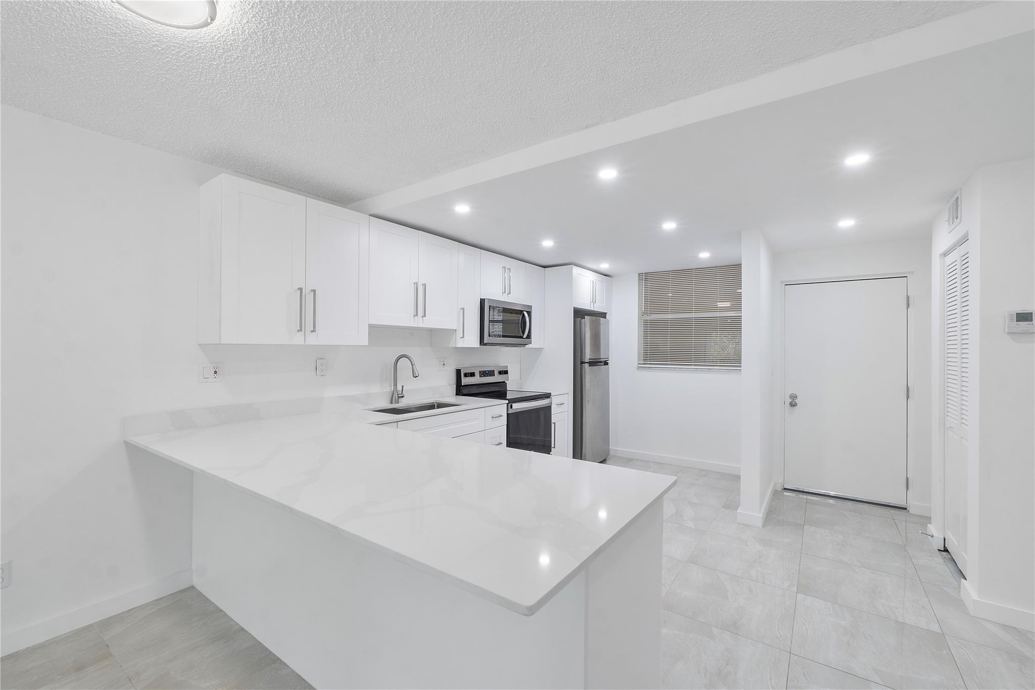 Stunning 2/2 55+ in Environ II in Lauderhill. Completely updated, open floor plan. New cabinets and appliances in your gourmet kitchen with luxurious Quartz counters and a new deep sink. The plumbing has been improved throughout. Upgraded ceramic tile throughout. Bathrooms have been updated with beautiful tile accents and vanities. High hat lighting. Freshly painted with upscale molding. Even the front door has been replaced! Huge patio to enjoy your morning coffee. Roll down shutters for extra protection. Water, cable, Internet, trash and pest control are all included in your HOA fee. Numerous activities to enjoy at the nearby clubhouse with a tennis court and pool conveniently located across from the building. All assessments have been paid for a new roof, pool & elevator