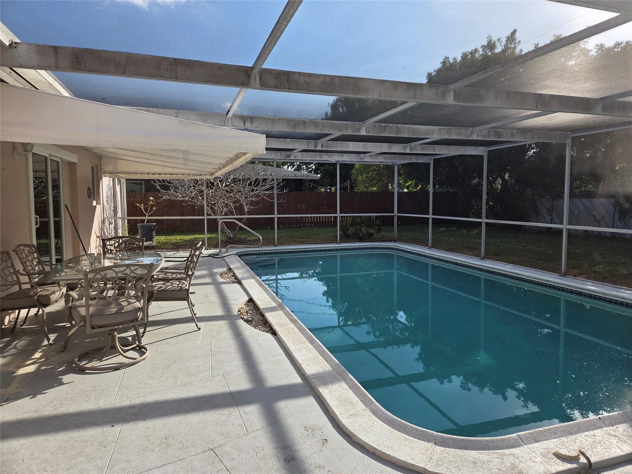 Welcome home! This inviting 3-bedroom 2 bath home offers a wonderful blend of comfort and potential. A sparkling pool and patio great for year-round entertaining. Features include impact windows and doors an interior laundry room updated electrical panel, solid plumbing and a strong A/C-great bones ready for your personal touch. Nestled in a family friendly neighborhood within walking distance to three schools this home offers both value and location. With a little TLC it's ready to shine and become your next perfect home