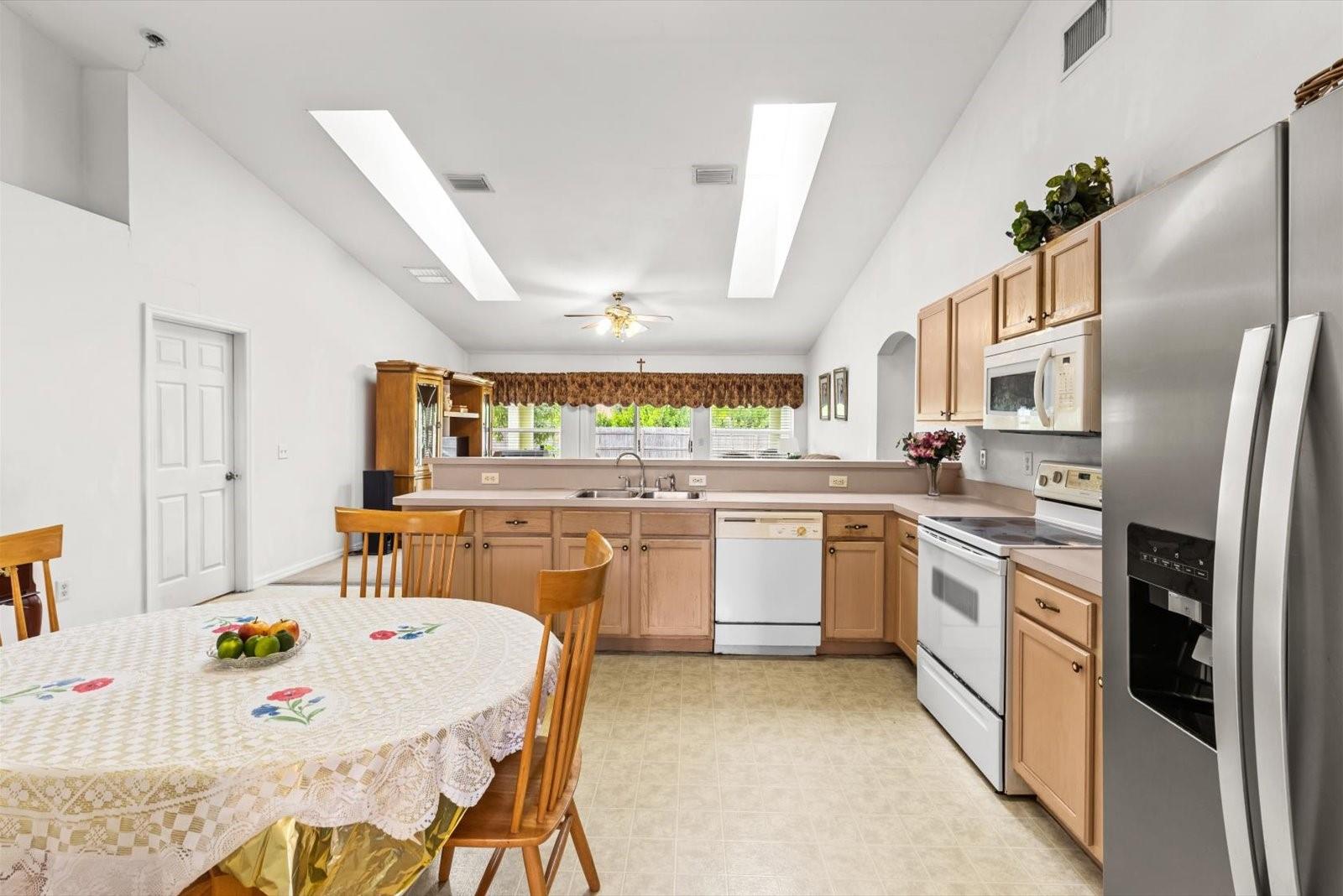 Discover the perfect blend of comfort, style, and convenience in this beautifully maintained 3-bedroom, 2-bath home boasting over 1800 sq ft, nestled in the sought-after Southbend Lakes neighborhood with a NEW ROOF, NEWER AC & NEWER HOT WATER HEATER. THIS HOUSE IS WALKING DISTANCE FROM A COMMUNITY BOAT RAMP! From the moment you arrive, you’ll appreciate the spacious lot; nearly 1/4 acre and attached 2-car garage that offer plenty of room for living and storage. Inside, this home features a smart split-bedroom layout that gives the primary suite added privacy, along with a vaulted ceiling and 2 LARGE SKYLIGHTS in the living areas that bring in natural light. The open layout flows from formal living and dining areas into a cozy family room and eat-in kitchen. Great location!