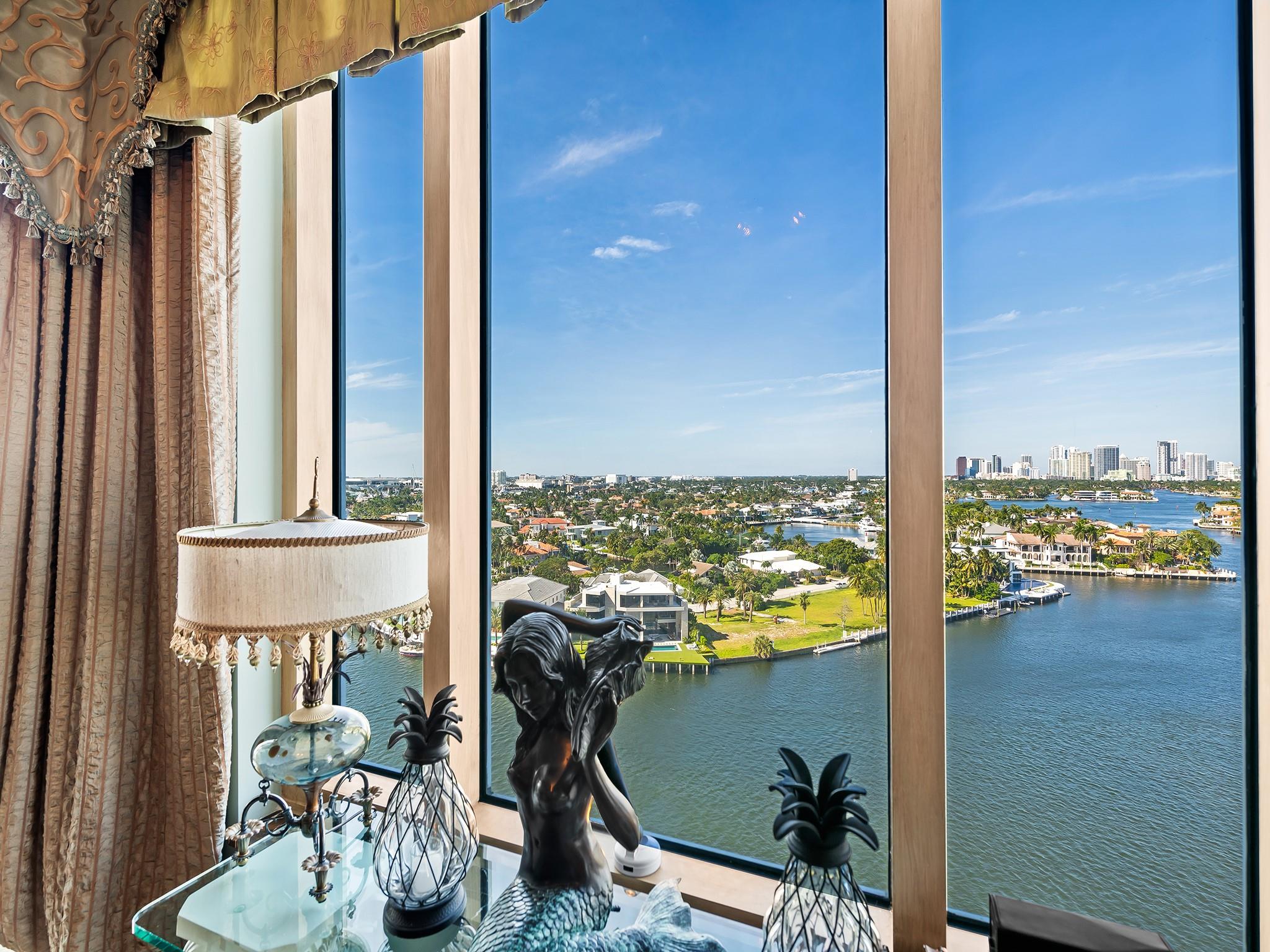 PANORAMIC PROTECTED VIEWS FROM THIS DIRECT INTRACOASTAL WATERFRONT RESIDENCE IN THE SKY! EXCLUSIVE BOUTIQUE HARBOURAGE PLACE WITH ONLY 44 RESIDENTS! GRAND LIVING AREA OF 3,500SF UNDER AIR! 3 ENSUIE BEDROOMS, 3.5 BATHS, MEDIA/DEN, 2 PARKING SPACE, STORAGE ROOM & WHOLE APARTMENT WATER FILTER AND SOFTENER. CUSTOM DESIGNED INTERIOR WITH 9' CEILING THROUGHOUT FLOWS SEAMLESSLY THROUGH A GRAND FOYER ENTRY INTO THE EXQUISITE LIVING/DINING ROOM AND FABULOUS CHEFS KITCHEN! TWO EXPANSIVE BALCONIES ARE PERFECT FOR ENTERTAINING AND SUNSET COCKTAILS! Refined master suite with luxurious spa bath and large walk-in closets. Resort amenities include a heated pool, fitness center, clubroom w/ catering facilities & pizza oven &24-Hour security. Just a moment away from all that Fort Lauderdale has to offer.