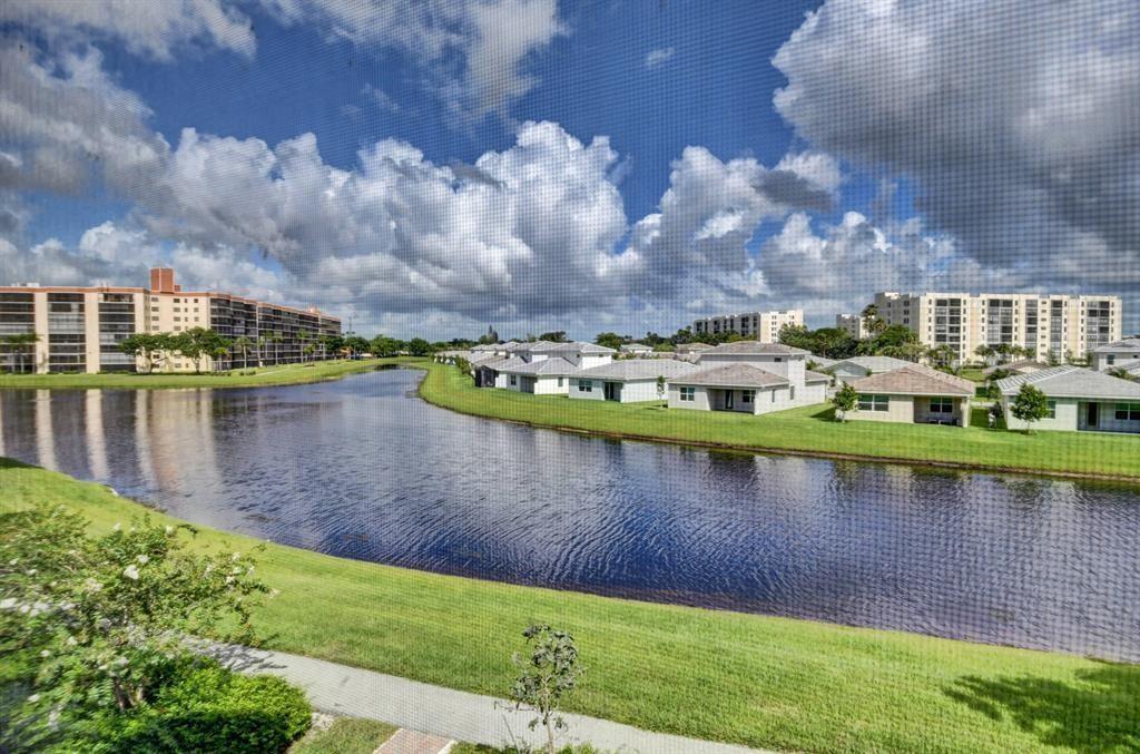WATER VIEW BREATH TAKING HUGE 2 BEDROOM 2 BATHROOM. COME SEE IT RIGHT NOW. GREAT PLACE WITH GATED COMMUNITY CLOSE TO ALL YOU NEED. EXTRA LARGE CLOSETS. LARGE EAT-IN KITCHEN WITH A PASS-THRU TO THE DINNING ROOM. FULL LAUNDRY INSIDE UNIT, UNIT HAS AN OUTSIDE STORAGE FOR YOUR CONVENIENCE, BUILDING HAS ELEVATOR. TILE AND LAMINATE FLOORS, THE MASTER BEDROOM HAS A WONDERFUL VIEW TO THE LAKE AND HAS A DOOR TO THE SCREENED IN PATIO. LIKE NEW WASHER, DRYER, A/C WATER HEATER. SCREENED PATIO WITH AMAZING WATER VIEW. COME SEE IT. CLUB HOUSE, SWIMMING POOLS, CLUB HOUSE, GYM, ETC... ENGLISH, ESPANOL, PORTUGUES