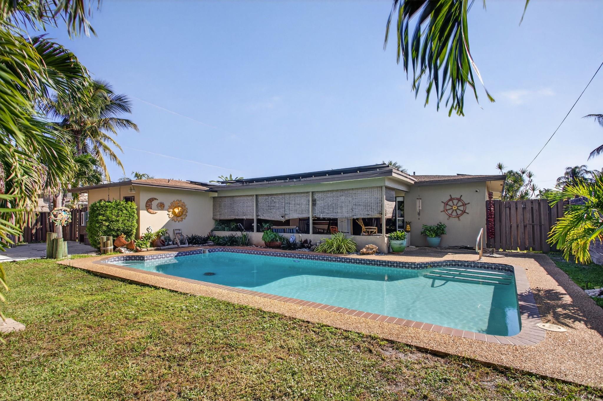 Welcome to 301 Southeast 8th Court in Pompano Beach! This delightful 3-bedroom, 2-bathroom home. Dive into your private pool or unwind under the tiki hut, perfect for outdoor entertaining. The kitchen has been recently updated. The property is equipped with impact windows, tankless water heater and 56 solar panels for energy efficiency. The spacious two-car garage and additional parking offer convenience. Experience a blend of comfort and style in this inviting home!