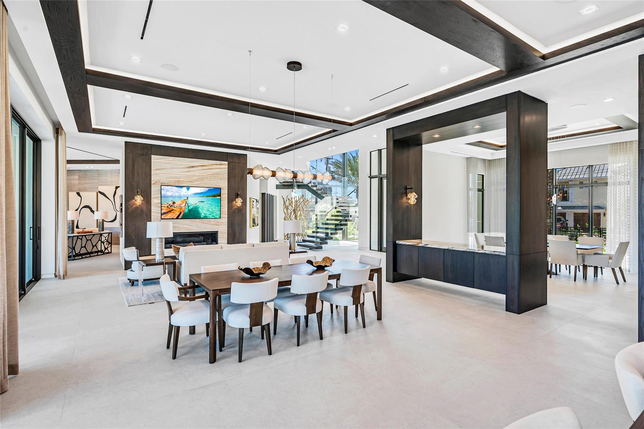 New waterfront estate spanning nearly 13,000 sq. ft. Designed for the ultimate lifestyle, it offers a 3,500 sq. ft. A/C showroom garage with space for 20 cars, a state-of-the-art gym, and the option for a private movie theater, or all of the above. With 6 bedrooms and 6.2 baths, the residence features a lavish primary suite, gourmet chef’s kitchen, and a media & club room with a pub-style wet bar. High-volume ceilings, sleek modern design, and floor-to-ceiling windows showcase stunning lagoon views throughout. Outdoor living is redefined with a resort-style pool, summer kitchen, and tranquil water features. A deep-water concrete dock accommodates large yachts, all just minutes from the ocean, beaches, and airport.