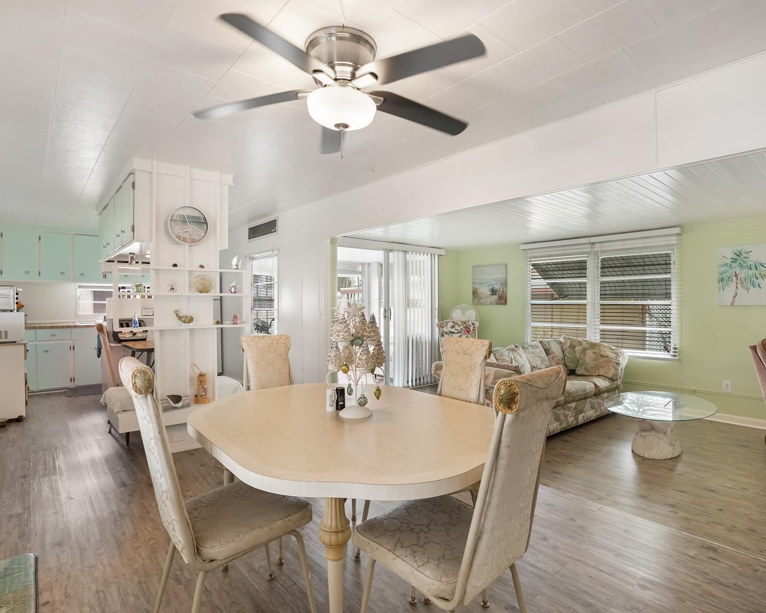 Charming 2 bedroom, 1 bathroom manufactured home in 55+ Park City Estates, where you own the land. Open-concept kitchen with a bright, airy feel, gleaming wooden flooring, and a spacious layout that adapts to your lifestyle. Enjoy a sunny Florida room, perfect for relaxing or entertaining. Carport plus driveway for ample parking. Community perks and the security of owner-occupied land ownership make this a standout retirement home. Don’t miss this inviting, well-maintained residence—schedule a visit today.