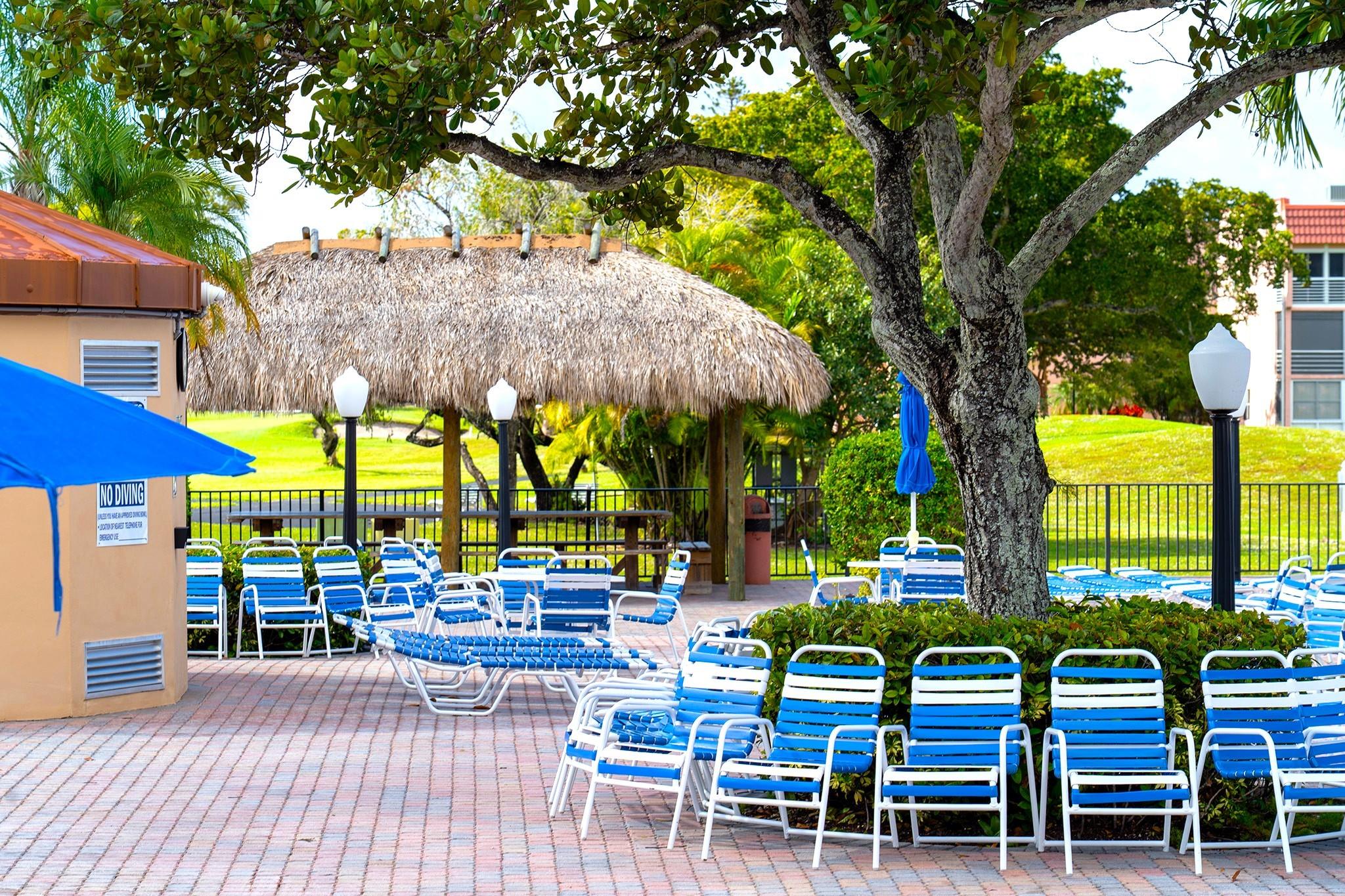 Discover comfort and convenience in this charming 1-bed 1-bath ground-floor condo in the desirable 55+ community of Sunrise Lakes Phase 3. The unit features a spacious bedroom with ample closet space, a well-appointed kitchen with a two-door refrigerator, and a dining area that opens into a bright living room with beautiful wood flooring. The enclosed patio is fully screened. This vibrant community offers excellent amenities, including a golf course, indoor and outdoor pools, recreation and billiard rooms, a fitness center, library, movie cinema, picnic areas, 24-hour security and more. Manicured lawns and peaceful ponds provide a pleasant setting for strolls. A variety of social activities—clubs, bingo, dances—create a lively and engaging atmosphere. Emotional Support Animals are allowed.
