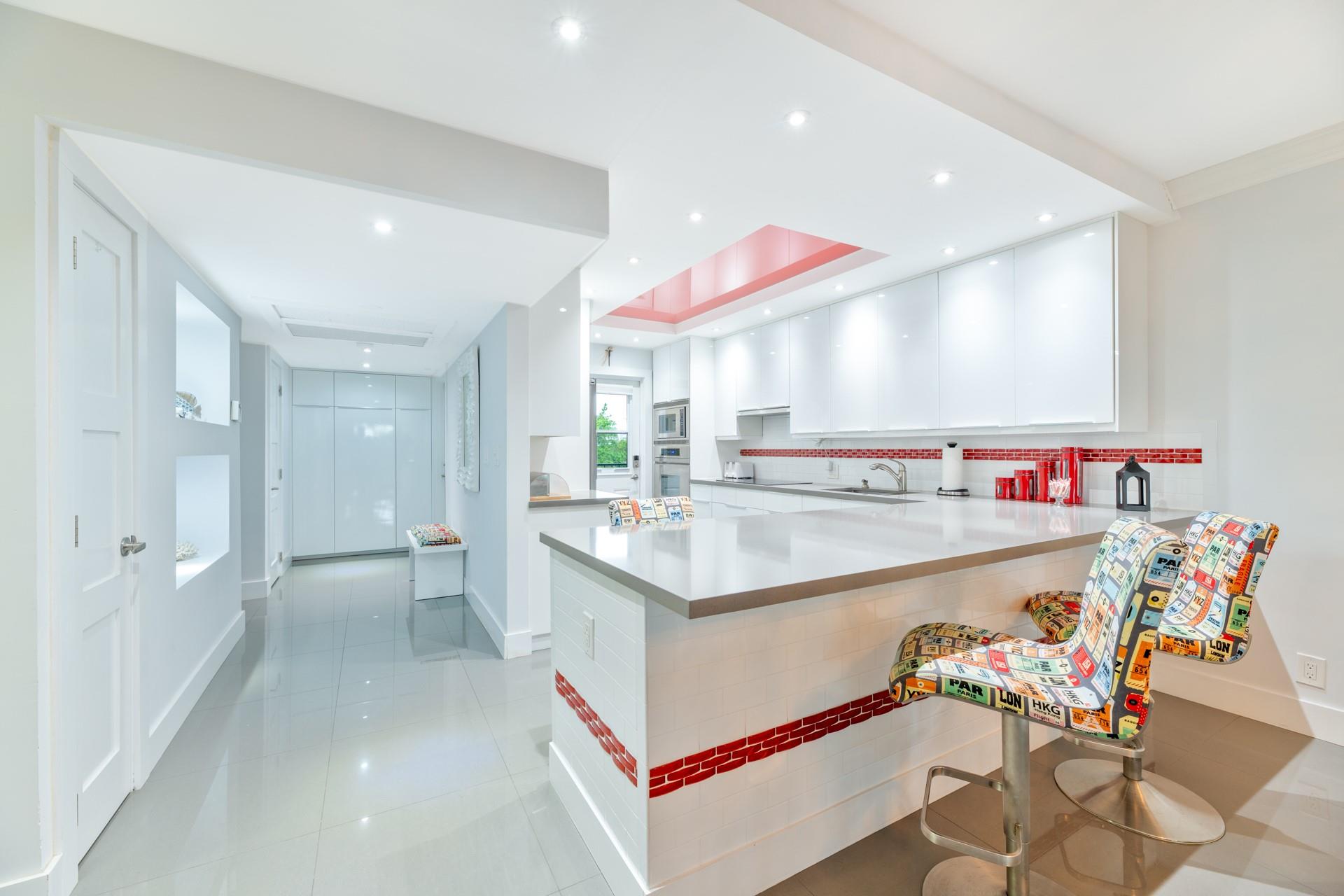 Stylishly furnished 3-bedroom, 2-bathroom corner unit condo featuring stylish porcelain tile throughout including the balcony for a seamless look. All impact windows, 3 impact multi-slide patio doors overlooking an 18 hole golf course perfect for serene indoor/outdoor living. The modern kitchen features quartz countertops, stainless steel appliances, and an induction cooktop. Both bathrooms feature walk-in showers and modern vanities. Stylish leather living room furniture enhances the open, elegant layout. Ample storage plus a separate storage area. Secure building with foyer entrance. Amenities include 3 heated swimming pools, tennis court, clubhouse, sauna, gym, barbecue area, walking trails, and golf course. Selling fully furnished for a modern, maintenance free lifestyle, a must see!