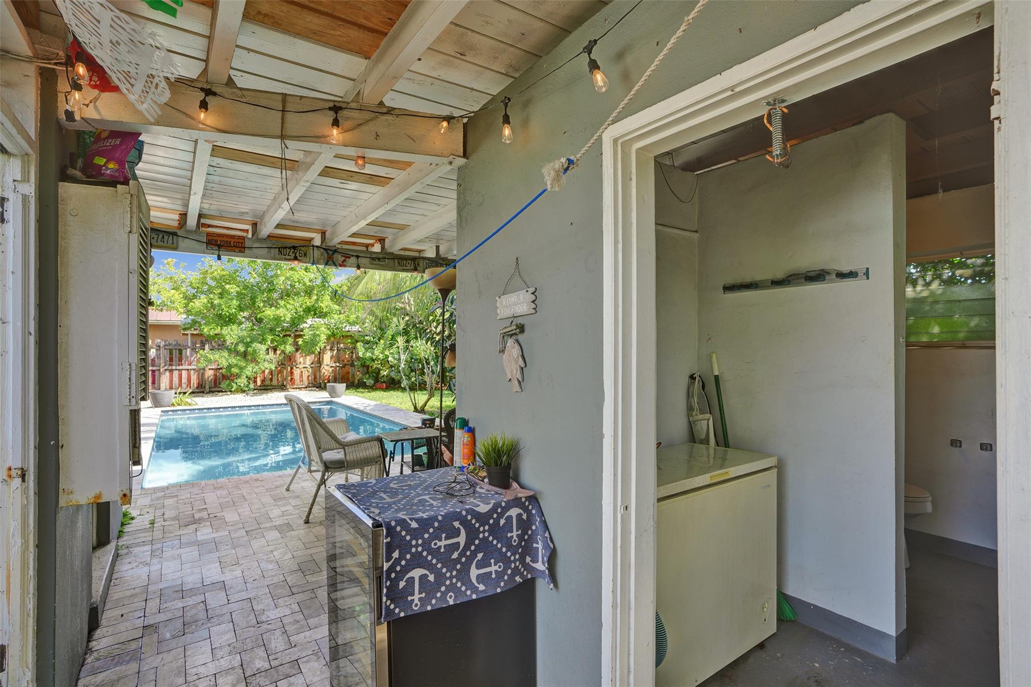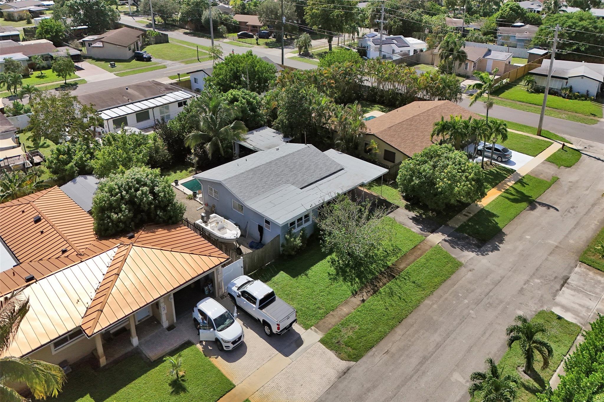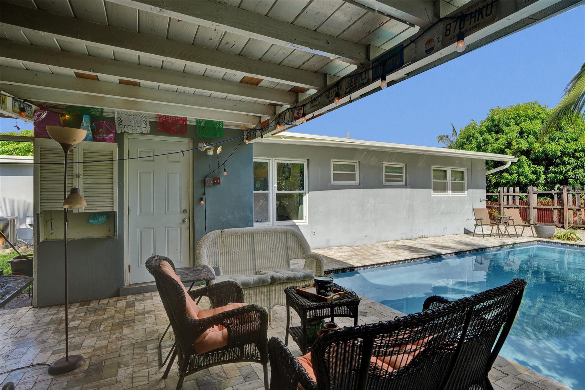 One of the few pool homes in the area priced under $500K. New Roof (2024, with permits), Impact Windows & Doors (with permits), and A/C (2019, with permits). Bright 3BR/2BA layout with tile flooring and huge bedrooms— rare for this area. Kitchen features white and beige cabinetry with granite and Formica. Large 8,250 sq ft lot—bring your boat; marina minutes away. Includes a carport with storage plus an extra shed. The outdoor space is ideal for entertaining, offering a sparkling pool, travertine/marble paver deck, covered patio, and a fully fenced yard with mango and avocado trees. Irrigation runs on well water. Priced to sell and ready for your upgrades—great potential to customize to your taste.