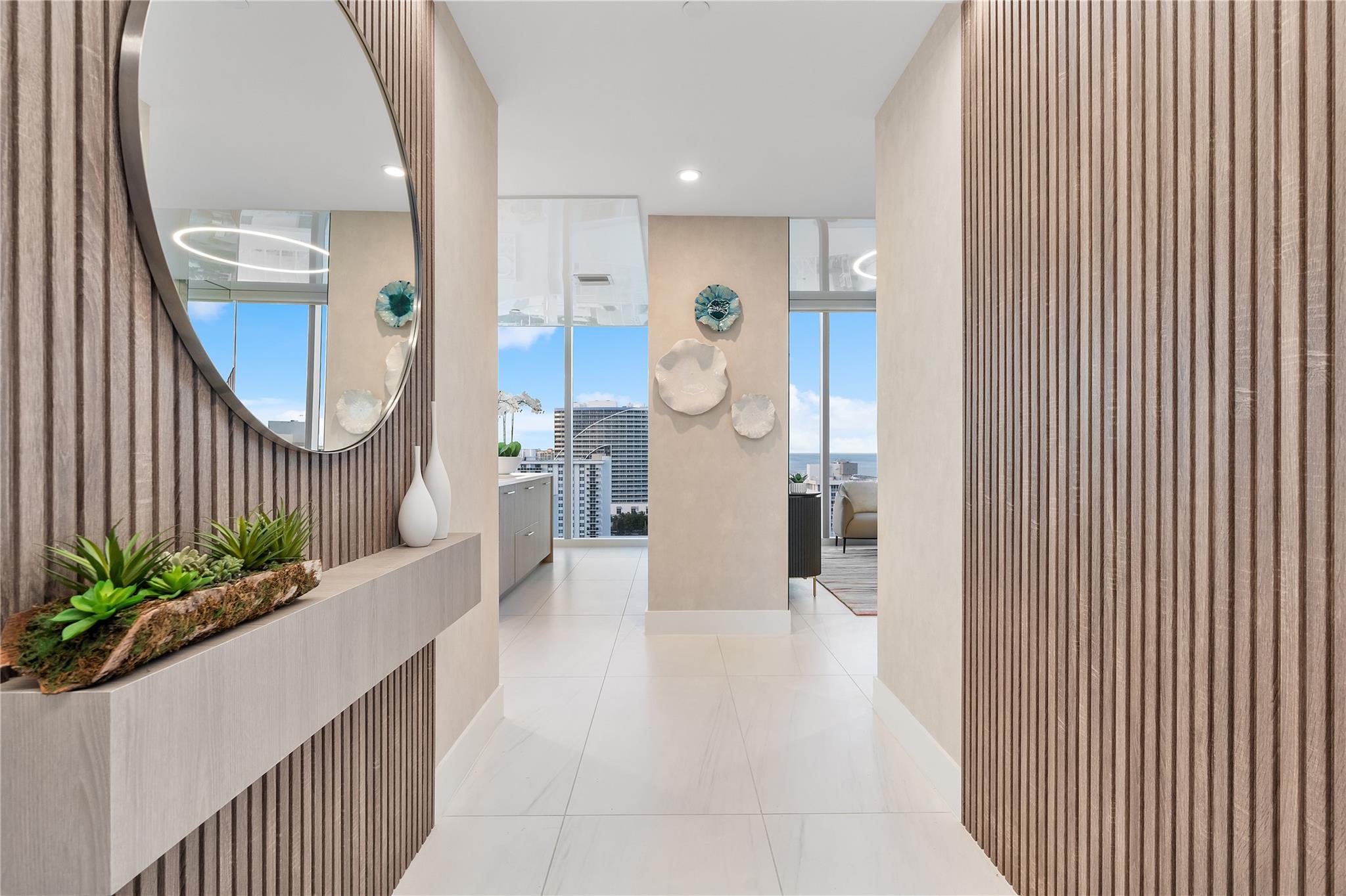 Welcome to your new residence in the sky in one of Fort Lauderdale's newest and tallest beachfront towers. Selene Oceanfront Residences is directly across the street from the award-winning Las Olas Beach, offering breathtaking views, & unparalleled resort-style living. This TURNKEY home is thoughtfully designed & enhanced by world renowned designer Perla Lichi. Featuring reflective ceilings, ambient lighting, gourmet Italian kitchen with exquisite craftsmanship & state of the art appliances, a stunning wine cellar, custom built-ins, motorized blinds, texturized wallpaper adding depth & dimension & so much more. Completely Turnkey, a Must see! amenities include two pools (resort-style and 75' lap pool), fitness centers, cabanas, poolside bar, dog park, 24/7 valet, and direct beach access.