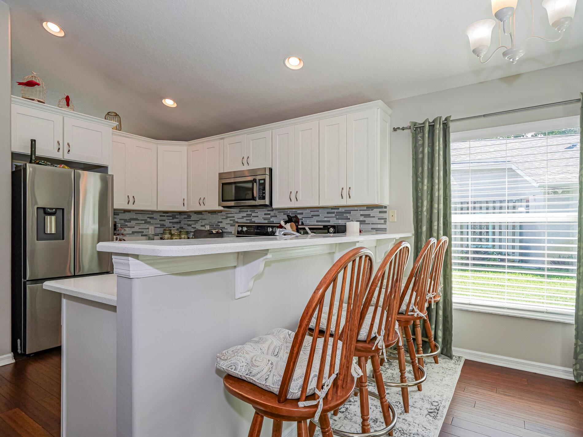 Perfect Location in Vero Beach! Bike to the beach or walk to the fitness center. This small friendly community has low HOA fees and is minutes from shopping, restaurants and more. Sitting on a cul-de-sac, this perfect home offers convenience and affordability. The kitchen has beautifully upgraded white cabinets and sparkling quartz countertops. Featuring two bedrooms plus a den/office, wood plank floors, vaulted ceilings and a garage with a privacy screen to take advantage of the breeze. Come take a look.