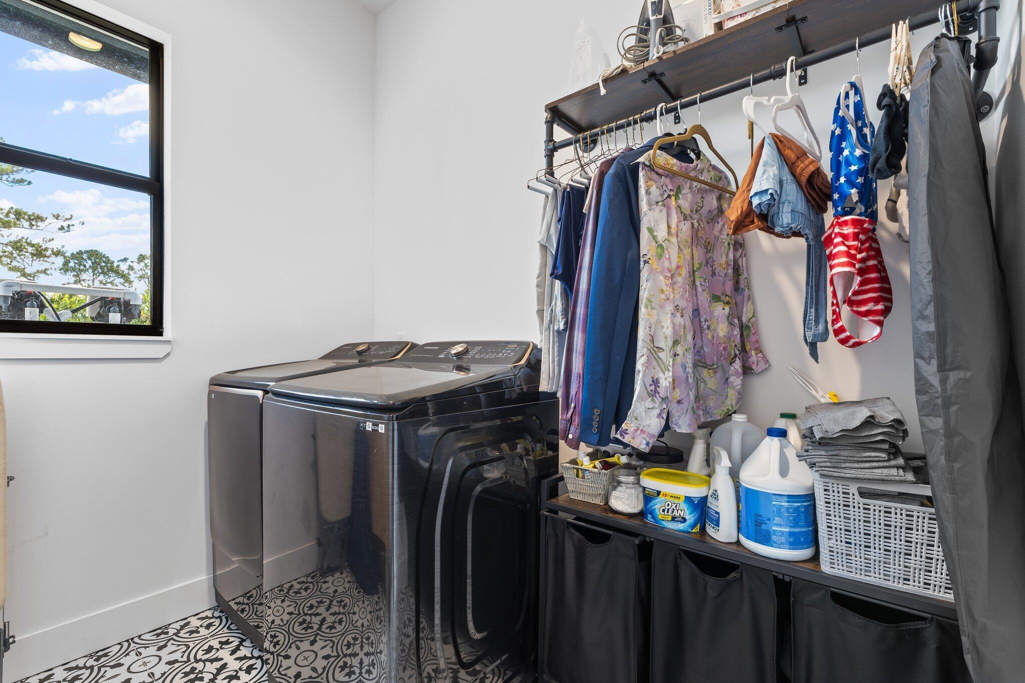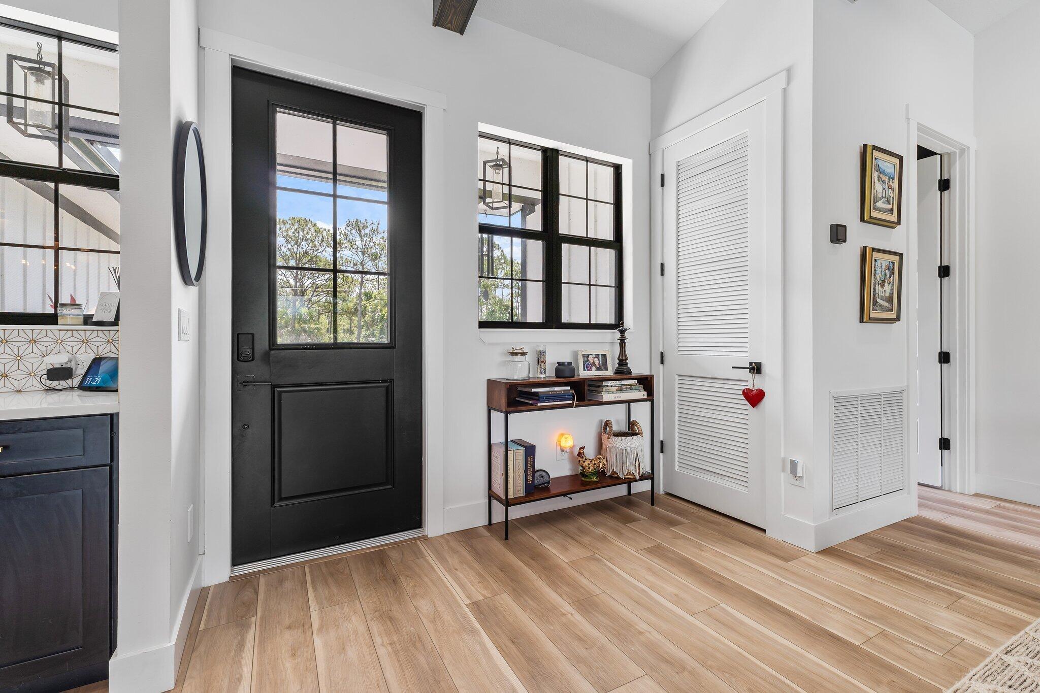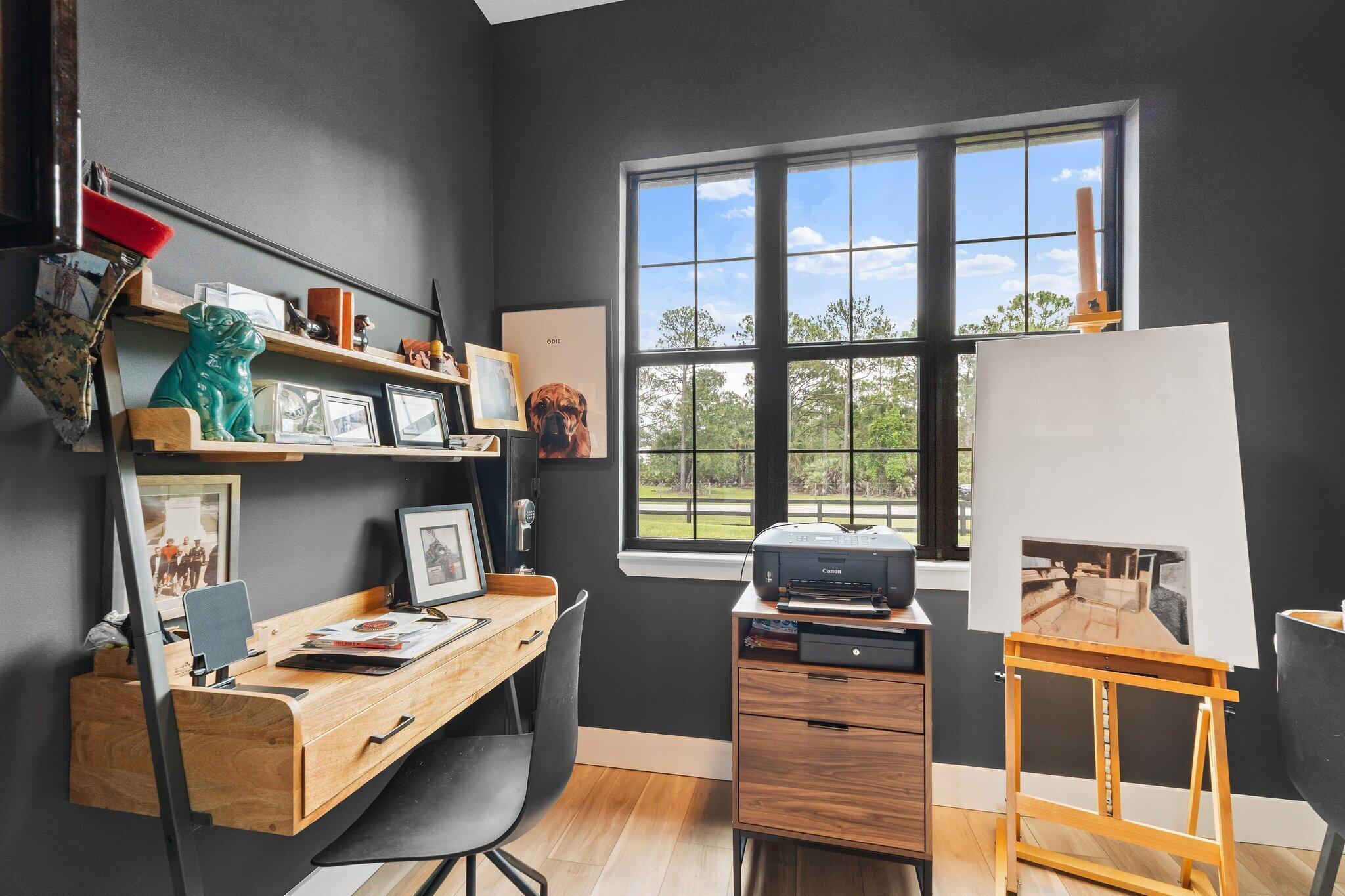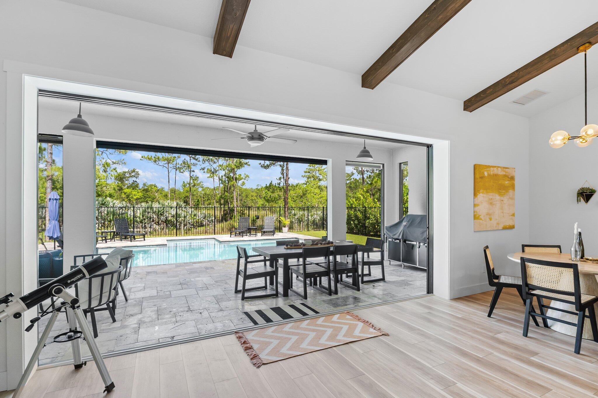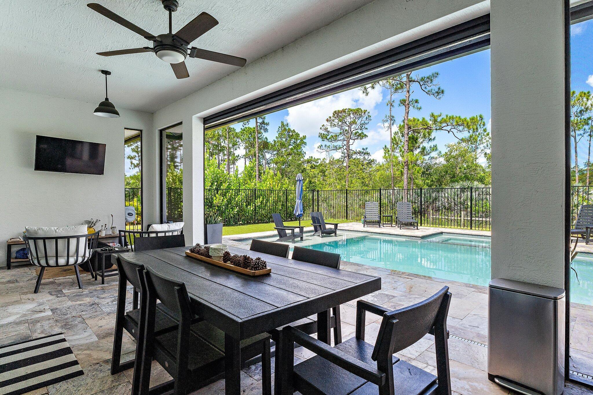 Introducing this absolutely stunning 2023 CBS built home featuring 3 bedrooms, 2 bathrooms, a den & a spacious flex room that could easily serve as a 4th bedroom. This modern farmhouse retreat sits on 5 pristine acres in the heart of Palm City Farms and sits at the end of a private paved road offers the perfect blend of luxury and tranquility. Enjoy a saltwater heated pool and spa, retractable automatic screens to enjoy your covered patio year-round, an oversized two-car garage, and a 30x30 detached building with a single stall... ideal for your hobbies, toys, or livestock. Inside, you'll find custom built-ins throughout, a beautifully designed mudroom, spray foam insulation, and state-of-the-art appliances. Topped with a sleek black standing seam metal roof this property truly stands out