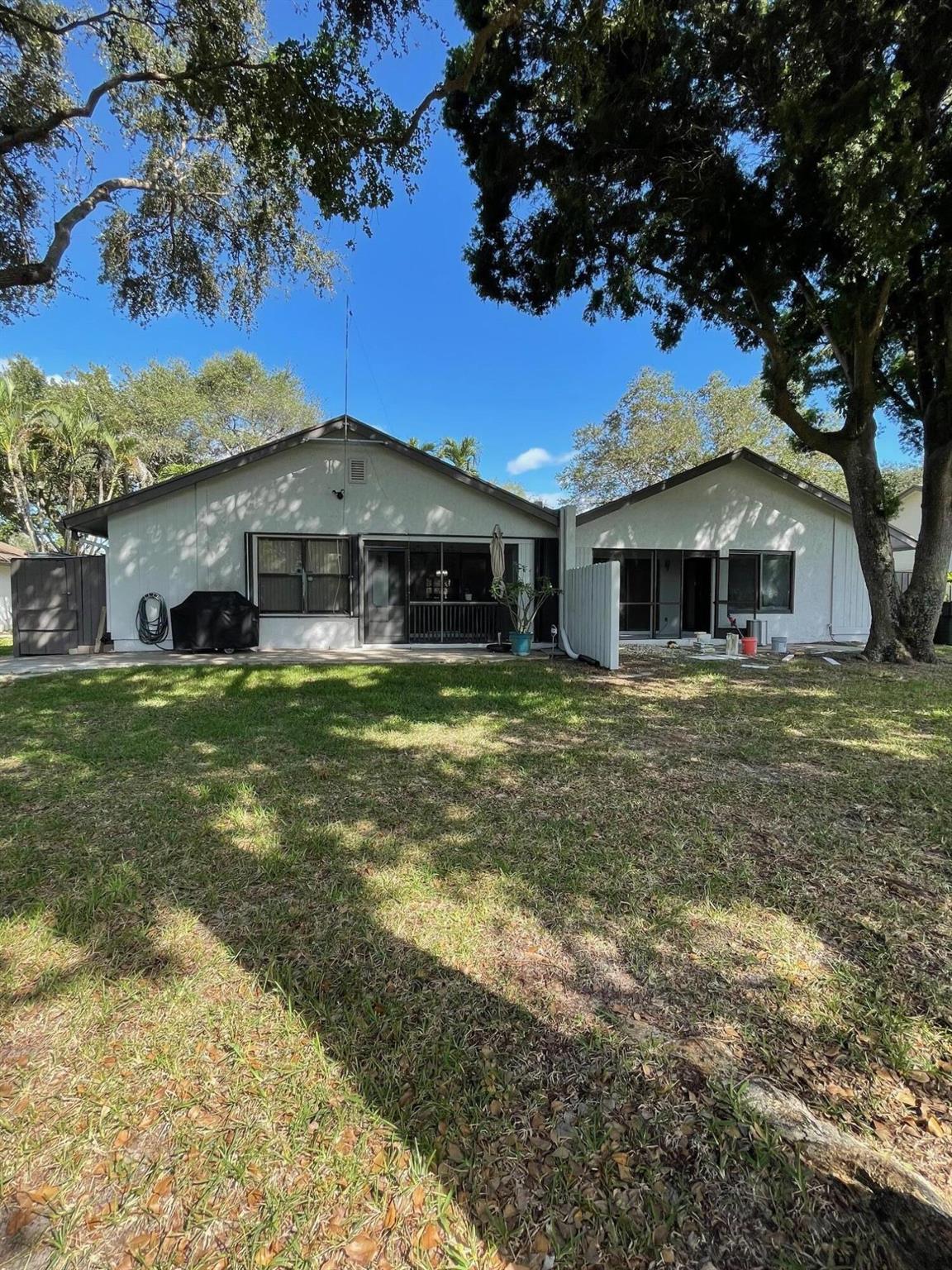 Beautiful 2/2 Villa with Vaulted Ceiling, Ceramic Italian tile throughout. Spacious Split Floor Plan, Screened Patio and an Outdoor Patio with a garden view. Many recent updates include: Elect. Panel, Wood Kitchen Cabinetry with under and top lighting, SS Appliances, Master and Guest Baths, new A/C, and washer. Need extra space? This unit has pulldown stairs for easy attic access. Low HOA fee that includes Lawn, Basic Cable, Trash Removal, Exterior Painting, Clubhouse that includes free WiFi, Screened in pool, tennis and Pickleball courts. Very Pet Friendly Community. Not too far from the Beach! Easy access to both Turnpike and I-95. Walking distance to Shopping, Restaurants and places of Worship. Like to Golf? Plenty of that nearby. Downtown Delray a few minutes drive away.Move in ready