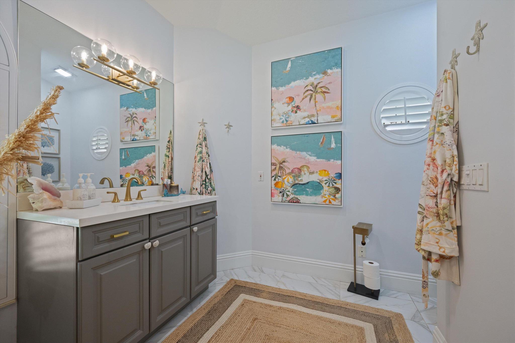 Resort-style living in Heritage Oaks.Located behind the 24-hour manned gates of one of Jupiter's most picturesque neighborhoods, this completely renovated single-story home blends elegant design with relaxed coastal living. Just minutes from the beach and across from the river, the residence features a new double front door, all-new designer lighting, plantation shutters, custom closets, and wide-plank flooring.The kitchen shines with a full-height vent hood, new hardware, and added island outlets. Expansive glass doors retract into the wall, opening to a private , fenced backyard with travertine pool deck, heated pool & spa, upgraded outdoor kitchen, and covered lanai with remote screens. With new landscaping, lighting irrigation, and a tiled roof, this home delivers turnkey luxury.