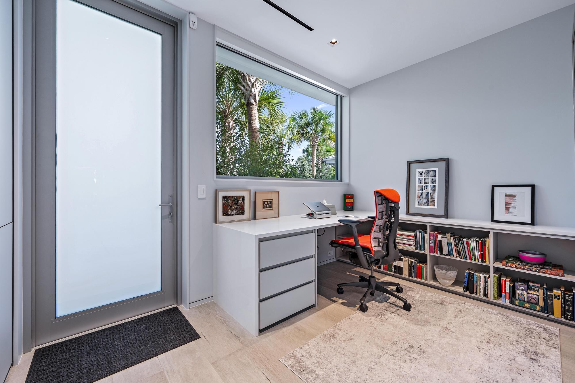 Custom built in 2023 - Experience contemporary luxury and serene living in this architectural masterpiece nestled within one of Palm Beach Gardens' most exclusive gated enclaves, Old Marsh Golf Club. Designed with sophistication and simplicity in mind, this single-story residence seamlessly integrates indoor and outdoor living through expansive glass sliding glass doors framing views of the infinity edge swimming pool, lush landscaping and a tranquil nature preserve.The open-concept living area features soaring ceilings, wide-plank floors, and sleek designer finishes throughout. A state-of-the-art kitchen anchors the space with minimalist custom cabinetry, premium appliances including wine refrigeration, induction cook-top, refrigeration/freezer drawers and a spacious island ideal for
