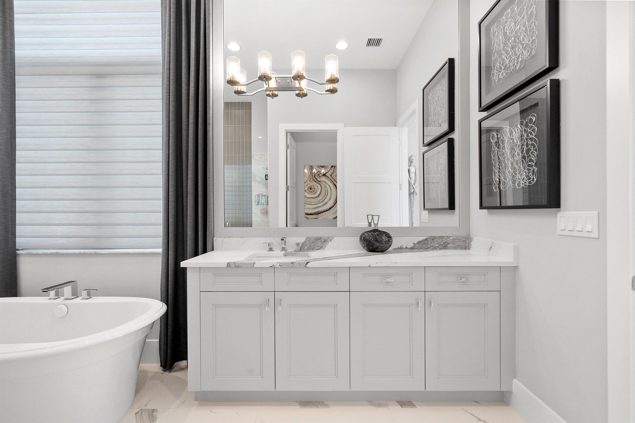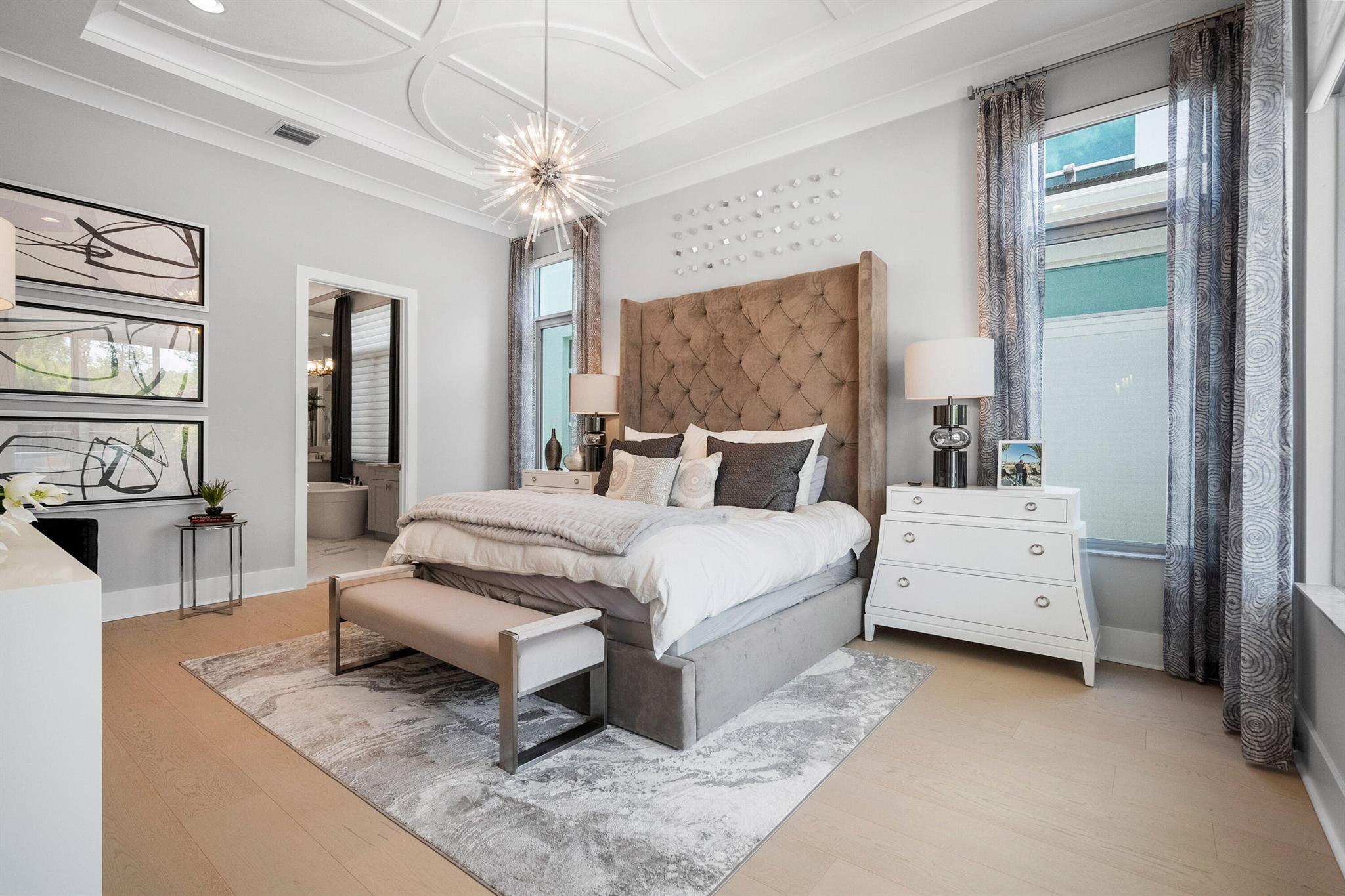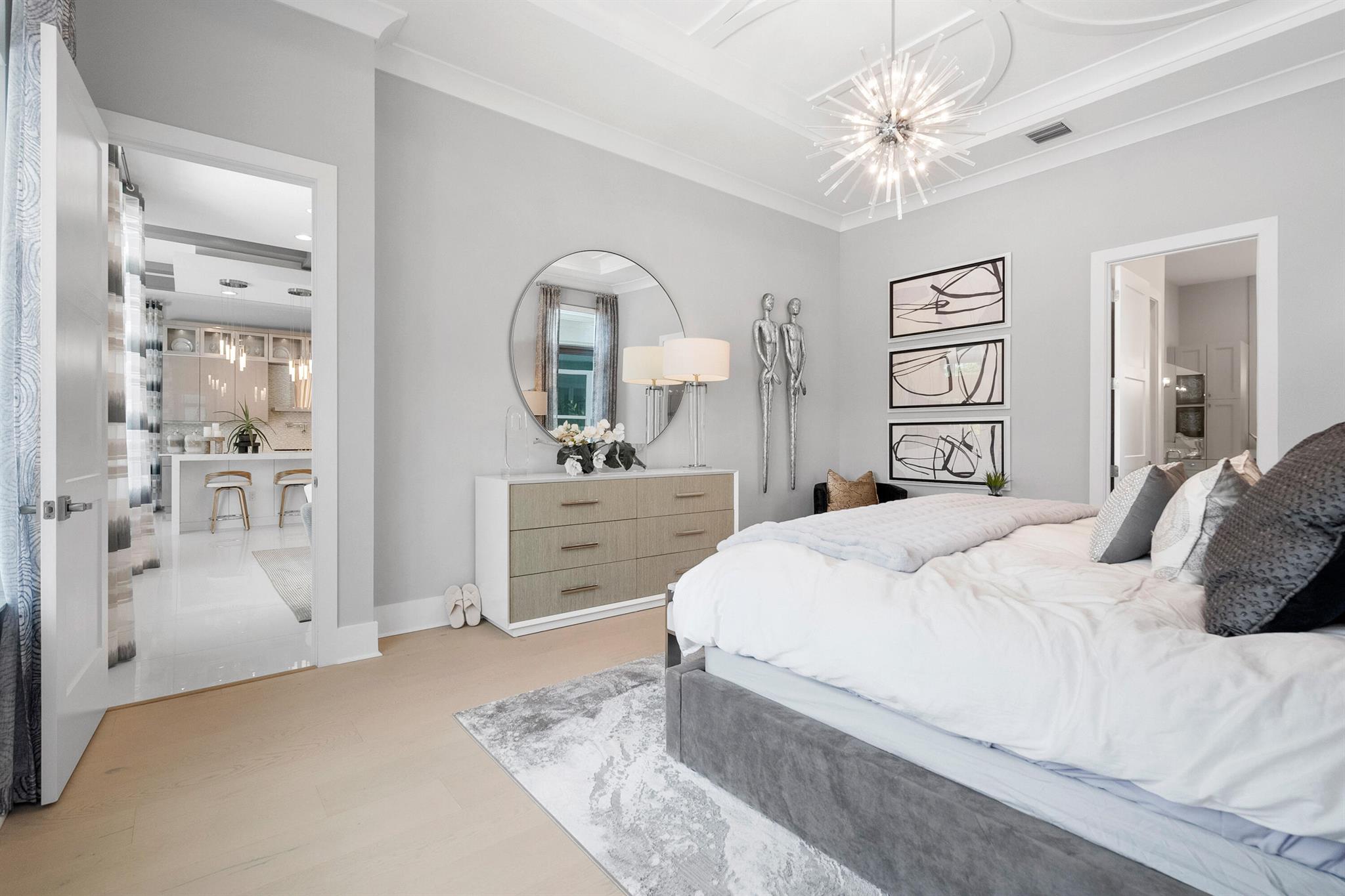 Presenting 4210 Mendel Lane - a breathtaking, move-in-ready designer model home featuring 5 bedrooms, 5.5 bathrooms, and 5,100+ square feet of modern sophistication. Every detail has been meticulously curated from gleaming white marble floors and dramatic coffered ceilings to custom millwork, designer lighting, and a chef's kitchen equipped with premium, top-tier appliances.This residence is a showcase of refined elegance and thoughtful design. Each spacious bedroom offers a private en suite bath with stunning tilework, while the expansive first-floor primary suite is a true sanctuary, complete with a spa-inspired bath, freestanding soaking tub, frameless glass shower, and custom-built walk-in closet.Additional highlights include two sun-filled laundry