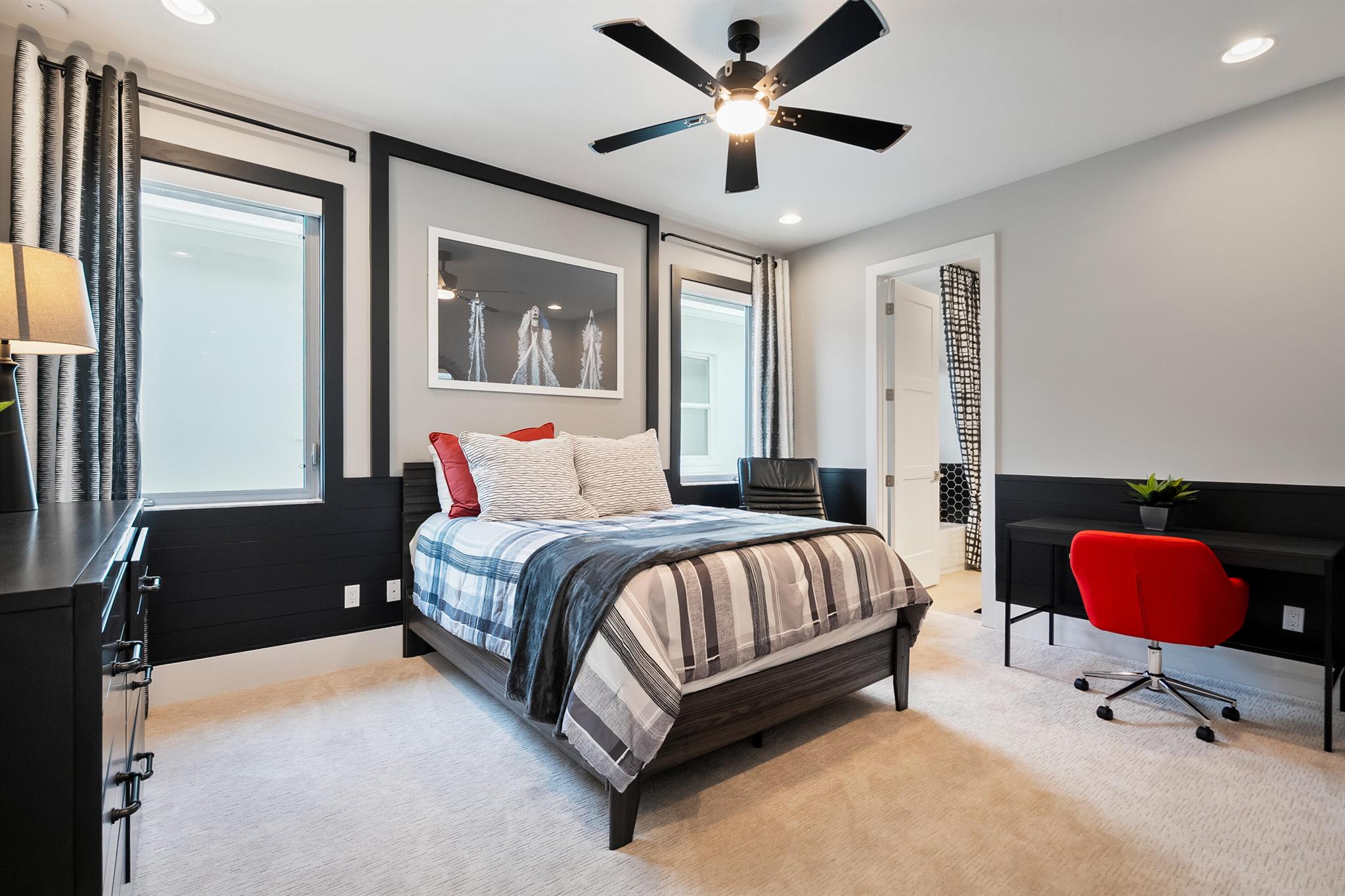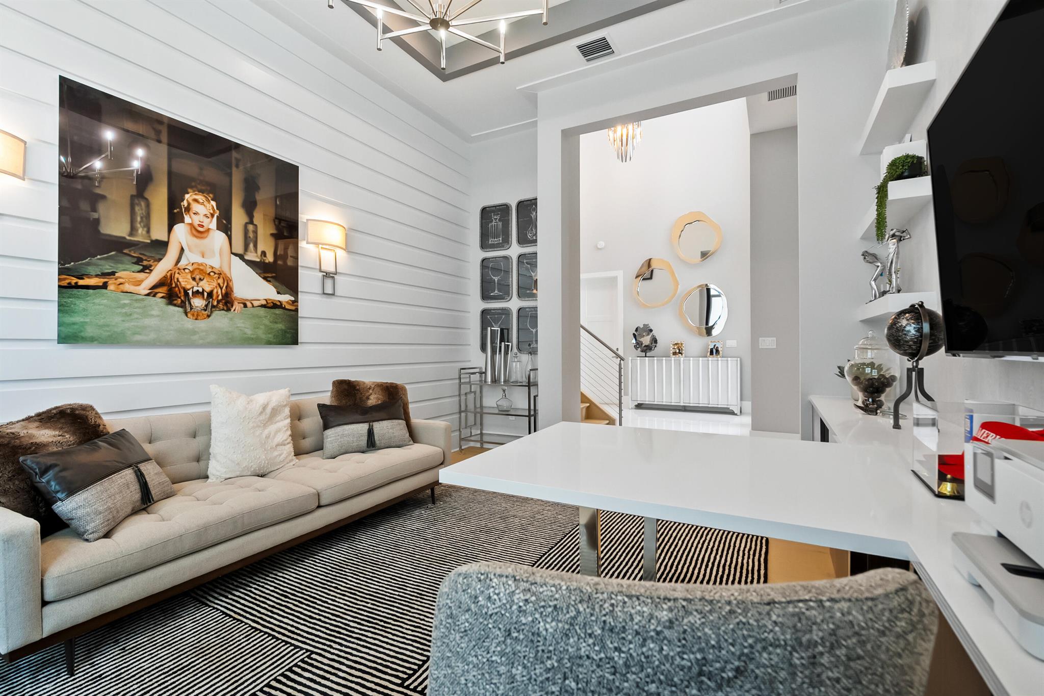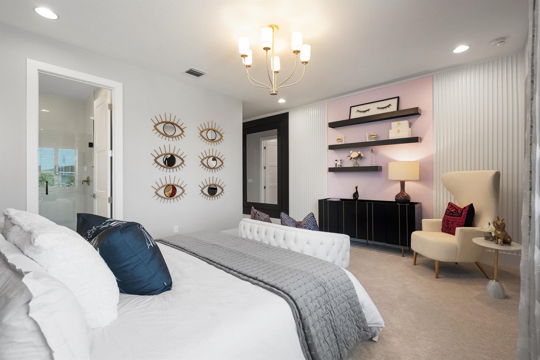 Presenting 4210 Mendel Lane - a breathtaking, move-in-ready designer model home featuring 5 bedrooms, 5.5 bathrooms, and 5,100+ square feet of modern sophistication. Every detail has been meticulously curated from gleaming white marble floors and dramatic coffered ceilings to custom millwork, designer lighting, and a chef's kitchen equipped with premium, top-tier appliances.This residence is a showcase of refined elegance and thoughtful design. Each spacious bedroom offers a private en suite bath with stunning tilework, while the expansive first-floor primary suite is a true sanctuary, complete with a spa-inspired bath, freestanding soaking tub, frameless glass shower, and custom-built walk-in closet.Additional highlights include two sun-filled laundry