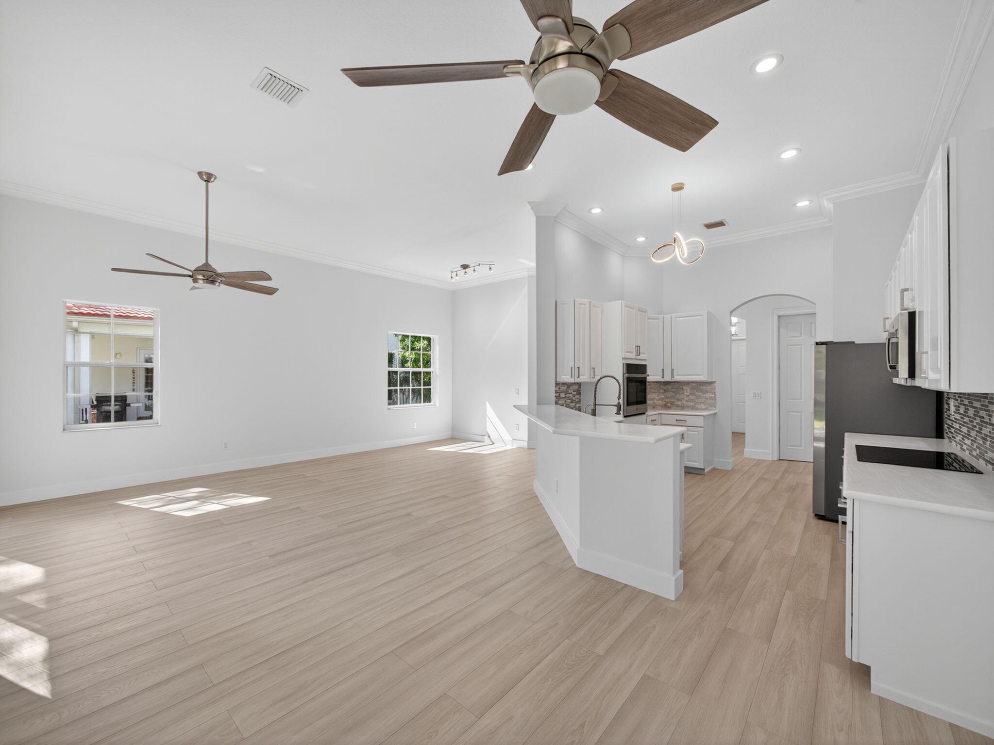 JUST COMPLETED EXTENSIVE REMODELING FOR THIS ONE LEVEL, 3 BDRM, 2 BATH HOME OVERLOOKING LARGE GREEN SPACE FOR ADDED PRIVACY AND ENJOYMENT. DEN IS NOW A 3RD BEDROOM W CLOSET. FULLY PAINTED INTERIOR, CLOSET BUILT INS. NEW PLUMBING & LIGHT FIXTURES, BRAND NEW HIGH END FLOORS & BASEBOARDS THROUGHOUT THE HOME. SO MUCH NEW & REFRESHED. 12' CEILINGS WITH TRAYED INLAYS. SCREENED IN LANAI. EVERGRENE OFFERS A WONDERFUL, GATED COMMUNITY WITH RESORT STYLE AMENITIES, 20,000 SQ FT CLUBHOUSE WITH INFINITY POOL, JACUZZIS, PICKLEBALL COURTS, FITNESS, TIKI RESTAURANT & BAR, BEACH VOLLEYBALL ALL OVERLOOKING BEAUTIFUL LAKE DOROTHY. IDEAL LOCATION IN PALM BEACH GARDENS, CLOSE TO BEACHES, RESTAURANTS, PBI AIRPORT AND SHOPPING. VISIT EVERGRENE'S WEBSITE FOR MORE COMMUNITY FEATURES.