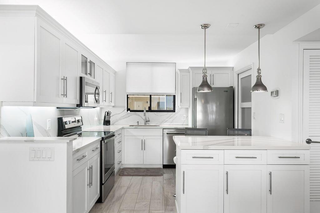 Oceanfront Luxury - Fully Renovated Ocean-side Unit with Breathtaking Views One of the most beautiful seaside towns on the east coast, Jupiter, Florida, and the only luxury condominium development directly on Jupiter Beach. This unit is one of the very rare ocean-facing end units with panoramic views of the Atlantic Ocean from every room and all three balconies. The gated Ocean Trail Community has a resort-like feel with all the amenities and this unit has been meticulously upgraded from floor to ceiling with the finest materials and craftsmanship. The open floor plan seamlessly connects the living, dining, and kitchen areas, creating the perfect with stunning ocean vistas. The flooring features Florine tile from Italy, while the kitchen dazzles with Cambria quartz countertops and