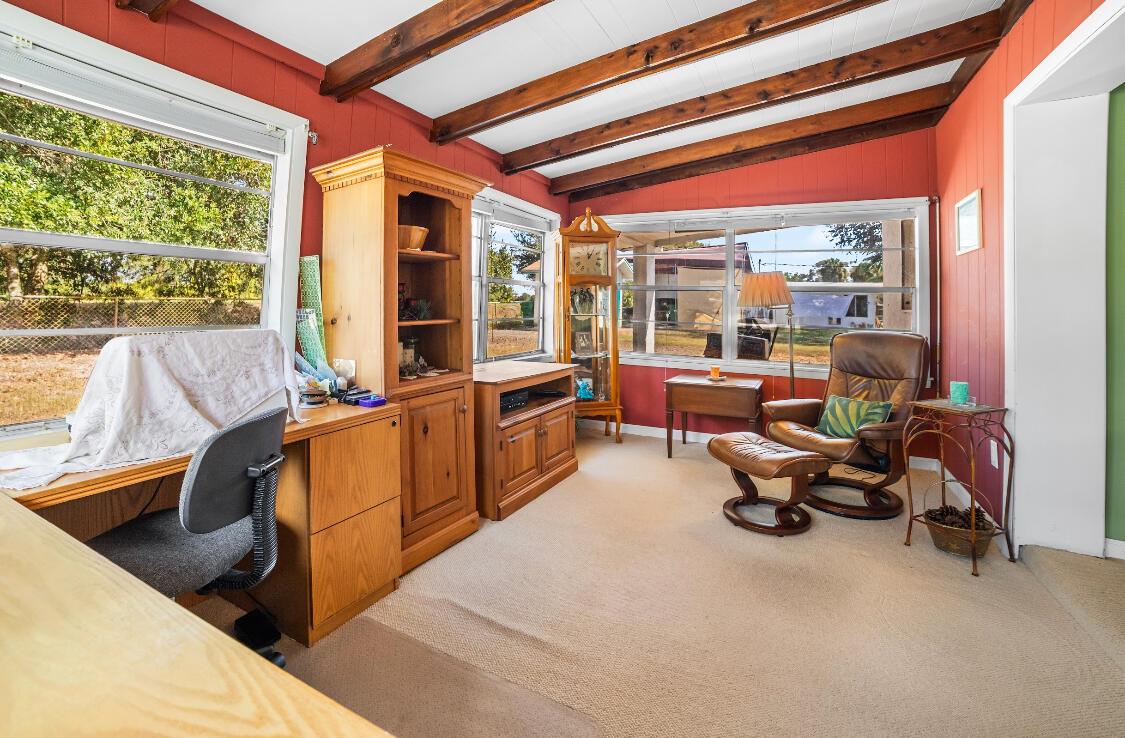 *BASSWOOD* 2 BDR 2 BTH with DEN CONCRETE BLOCK HOME- BUILT TO LAST. This charming home is turn-key, just bring your toothbrush. Beautiful wooden beam ceilings. 2018 roof, 2021 AC, new washer and dryer, matching kitchen appliances, large, enclosed Florida room, freshly painted exterior, fenced in yard, and plenty of parking for your boat or RV. Must see in person to appreciate. Measurements are approximate, must measure for exact.