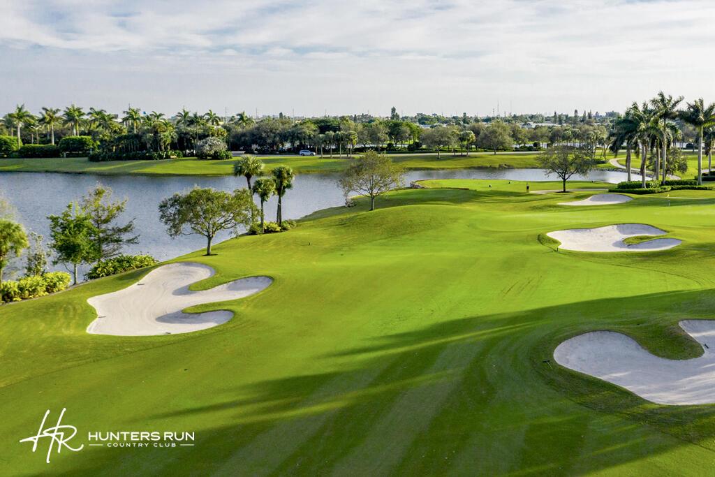 COMPLETELY RENOVATED 1ST-FLOOR CORNER 2br/2bth condo in a lush, park-like setting with winding lake and golf course views. Throughout the home you'll find neutral tones, wood-like porcelain tile floors, and full-set IMPACT WINDOWS & SLIDERS. The open kitchen offers wood cabinetry, granite counters, SS appliances, a breakfast bar, warming oven, and built-in desk area. With stylishly redone baths, custom lighting, large pantry/utility closet, a side patio leading out from the kitchen & great room, and a covered & screened-in lanai with truly stunning views. NEW ROOF in 2024. Move-in ready perfection in a serene setting! Experience idyllic living at Hunters Run Country Club, the premier community where vibrant amenities make everyday life feel like a vacation