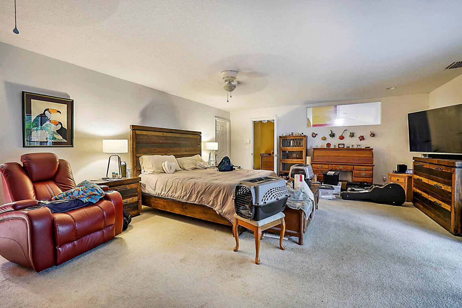 Desirable Fox Trail equestrian community, This custom home was built for a family needing lots of storage. 3 garages, atrium, upstairs loft offers plenty of room for bedroom/office/art/music studio with bathroom. Home has great bones in need of your personal touch & TLC. Roof & some drywall needs to be replaced, Large lot, canal on 3 sides, owner states property drains well. Private and quiet, lots of potential. Existing appliances and home are sold as is, All measurements are approximations and subject to error.Owners will consider all reasonable offers,