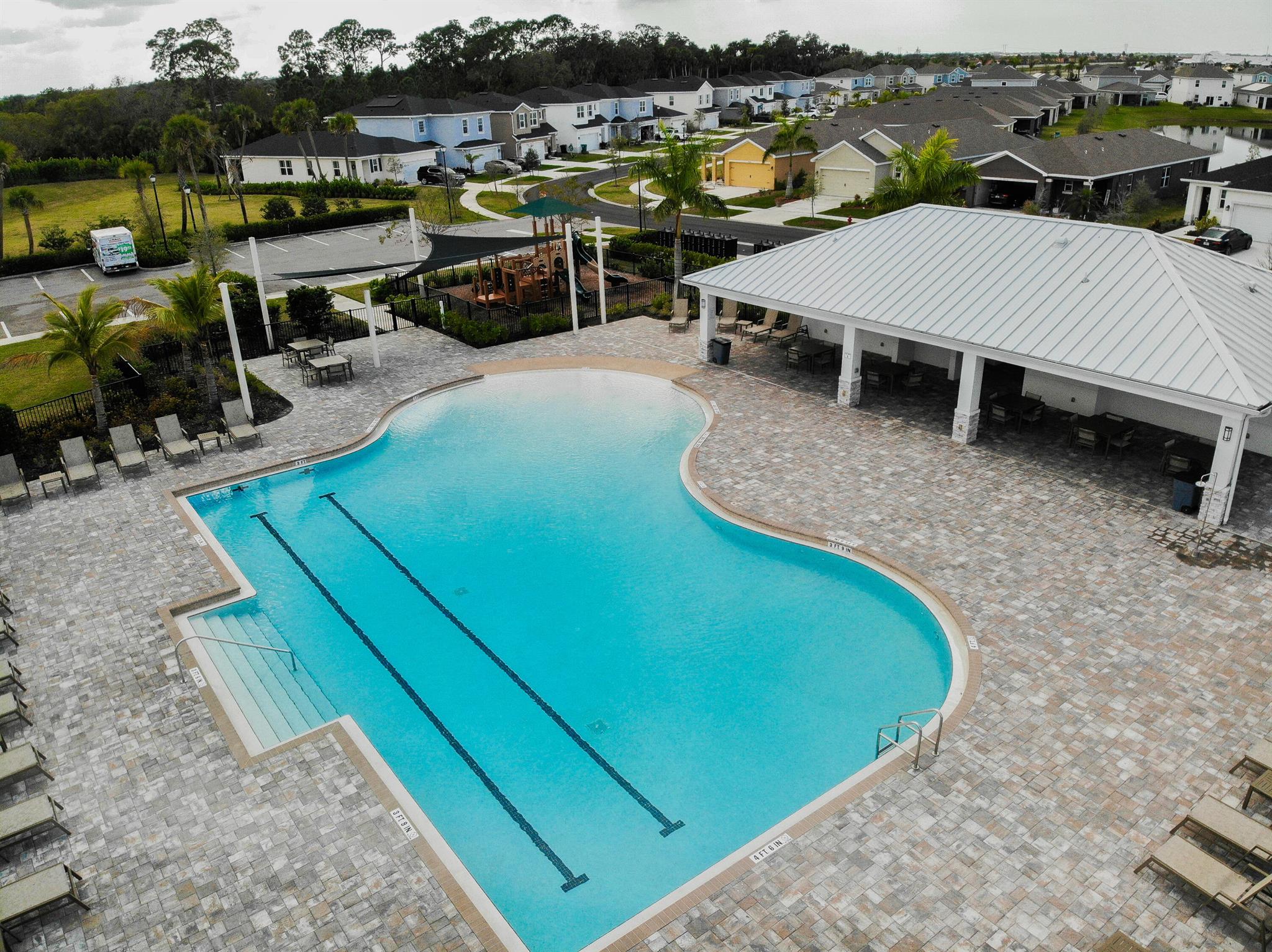 Must Sacrifice this 4BR/2BA/2CG Lakefront, Pool Home in Crosstown Commons! A rare find on .31 acre lot with fenced yard. Built in 2021, this home feels just like new and offers a beautiful lake views. The backyard features a sparkling oversized salt water pool with waterfall. Enjoy outdoor living on the covered and pictureframe screened lanai. Interior features include tile flooring in main living areas, carpet in bedrooms, stainless steel appliances, walk-in pantry, granite counters, disposal, and 42'' cabinets. Community pool, play areas. Low HOA dues and conveniently located near Tradition shopping, dining, and I-95.