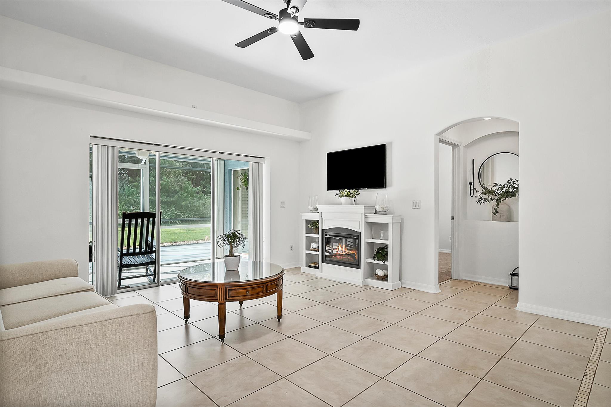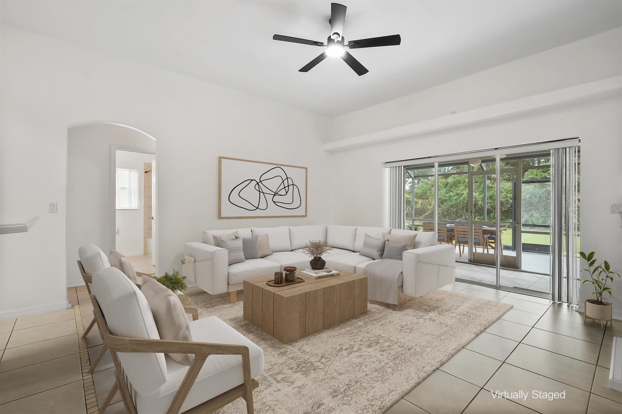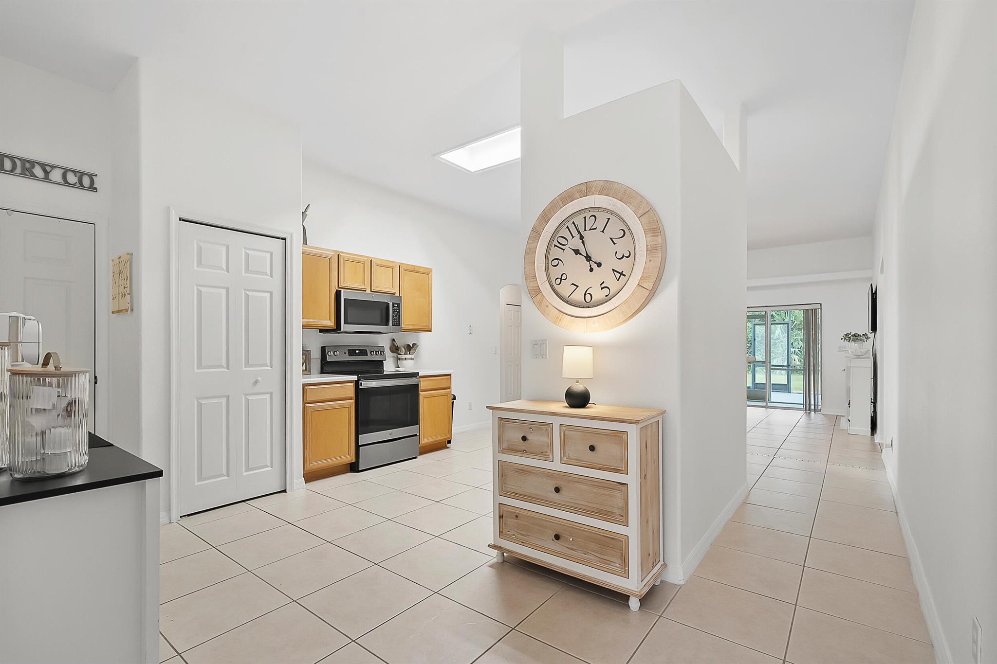 Beautifully maintained 3BR/2BA CBS home offers a bright, open, split-floor plan with soaring 10' ceilings. The spacious primary suite features his & her California closets, dual vanities, a soaking tub, & a large walk-in shower. Triple sliding doors lead to an oversized screened patio perfect for relaxation & entertainment. Ideally situated across from the lake & backs to a preserve area for enhanced privacy on a charming oak tree-lined cul-de-sac. Home updates include a brand-new roof, carpet in bedrooms, & sprinkler pump. Add'l features & updated: Tankless water heater (2024), AC (2022), stainless steel kitchen appliance package (2021), reverse osmosis system (2021), soft water system (2021), & washer/dryer (2021). Low HOA fees include lawn service, internet, cable, pool, & clubhouse.