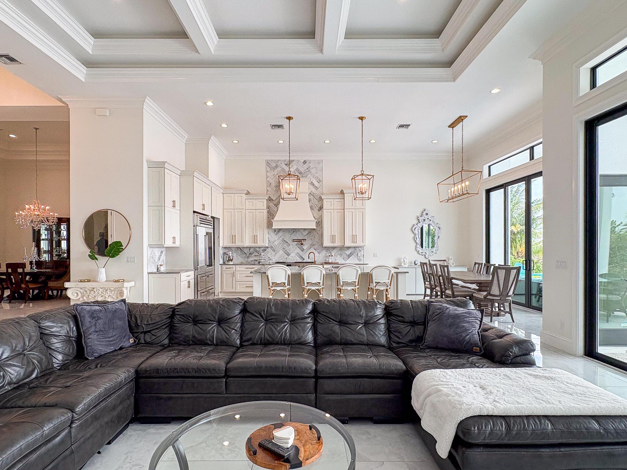FIRST TIME ON MARKET! Premier waterfront location built in 2020. Modern-Mediterranean home close to downtown Jensen Beach and Stuart. Spectacular southern exposure and wide-water view. Direct ocean access minutes from the St. Lucie Inlet. No low bridges - a boater's dream. High coffered ceilings, four spacious bedrooms plus a den, four full baths, and a cabana bath designed for everyday comfort and effortless entertaining. Gourmet chef's kitchen, top notch appliances, quartzite counters, custom cabinetry, walk-in pantry. Private waterfront with covered dock, two high-speed boat lifts, personal watercraft lift, and lowered platform for kayaks and paddle boards. Room for your yacht or sport-fish. Heated saltwater pool, spa tub, sun shelf, and iridescent glass tile.