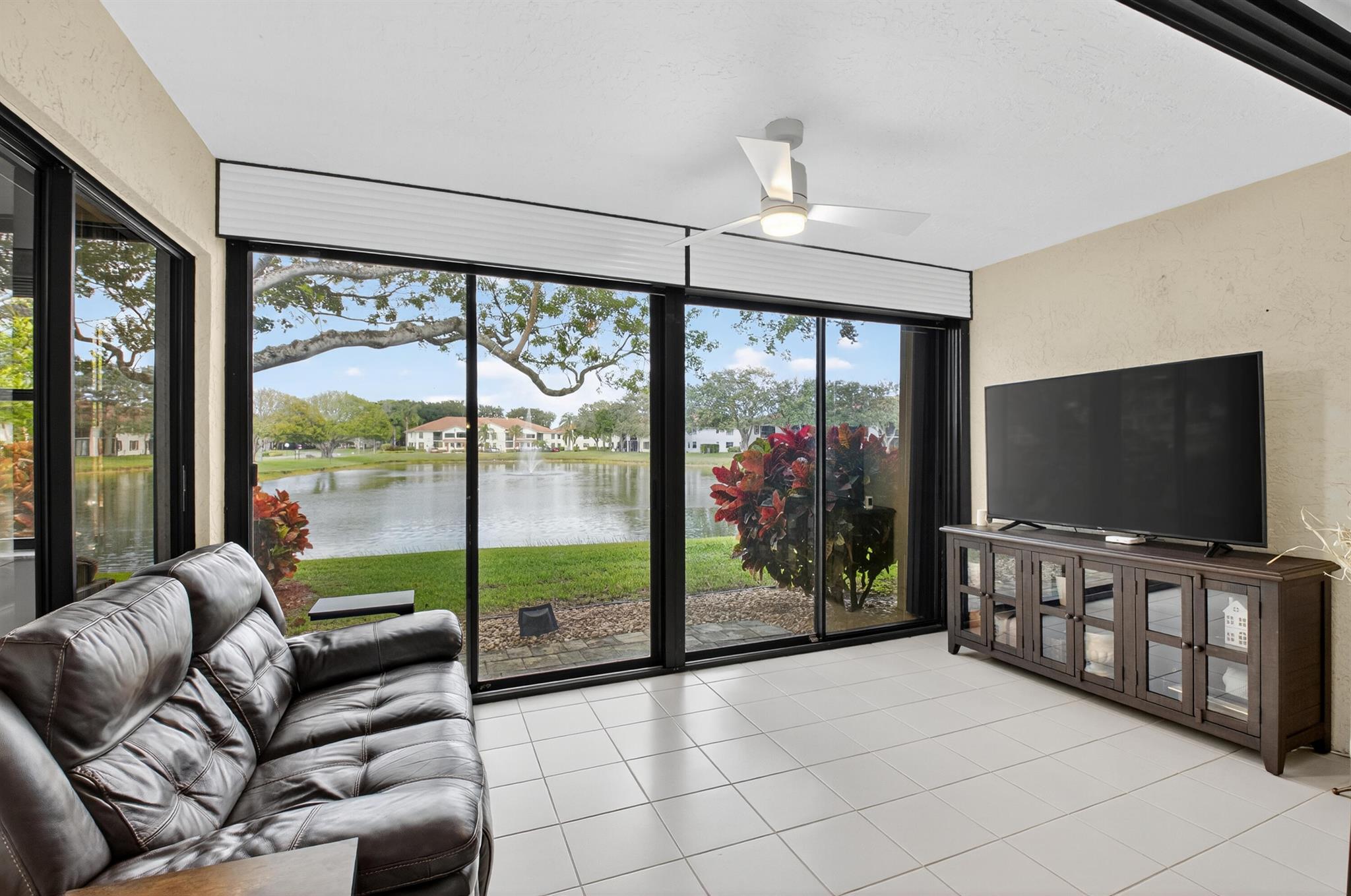 beautiful remodeled 3br,2b 1st fl condo with large lake view in active 55+ community. Enclosed patio Close to clubhouse Kitchen has granite countertops with wood cabinets & newer appliances, no popcorn ceilings tiled or laminate flooring throughout, A/C 2021, bathrooms also remodeled, walk in closets in 2 bedrooms Calif closet in master, accordion shutters Association fees include building insurance, alarm system, hot wire TV & Internet service, water & sewer. ''Best Value in town'' Active 55 + community featuring water aerobics, writing group, art group, bowling, tennis & pickleball courts, bocce court, shuffleboard court, fitness room, shows & parties, women's club & so much more. Credit score must be 670 or above