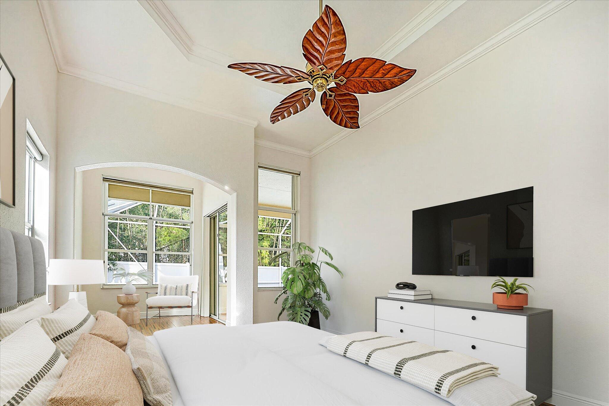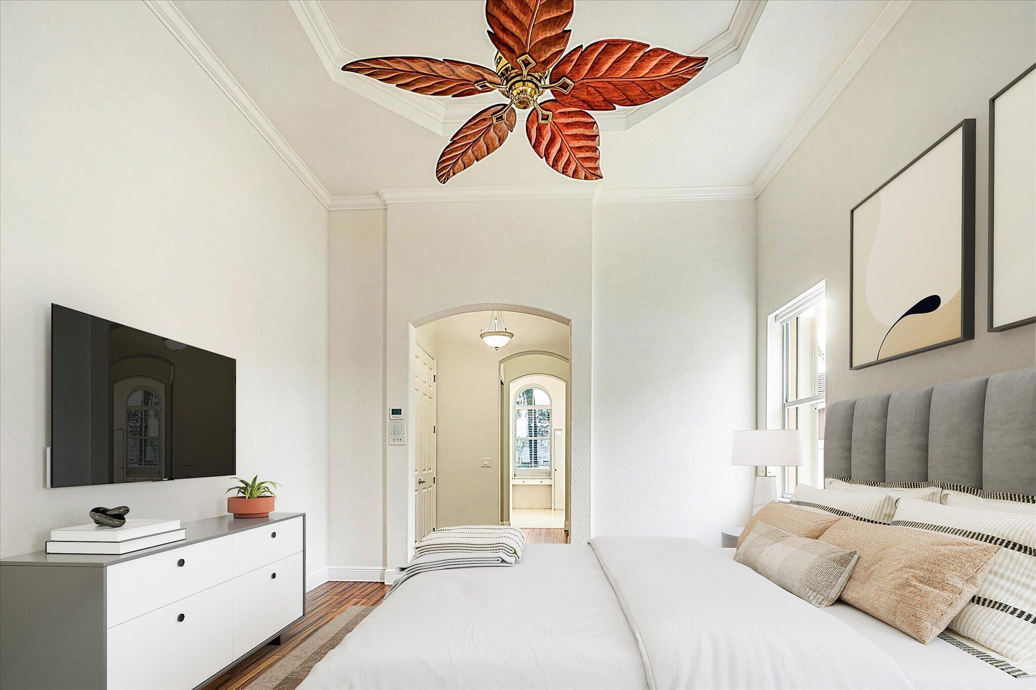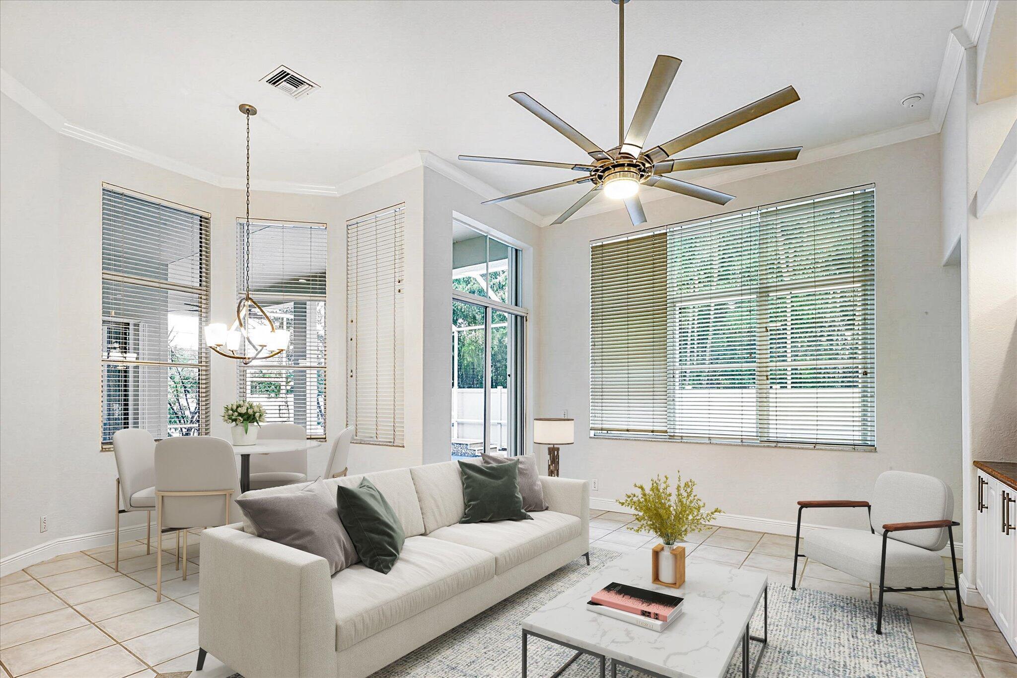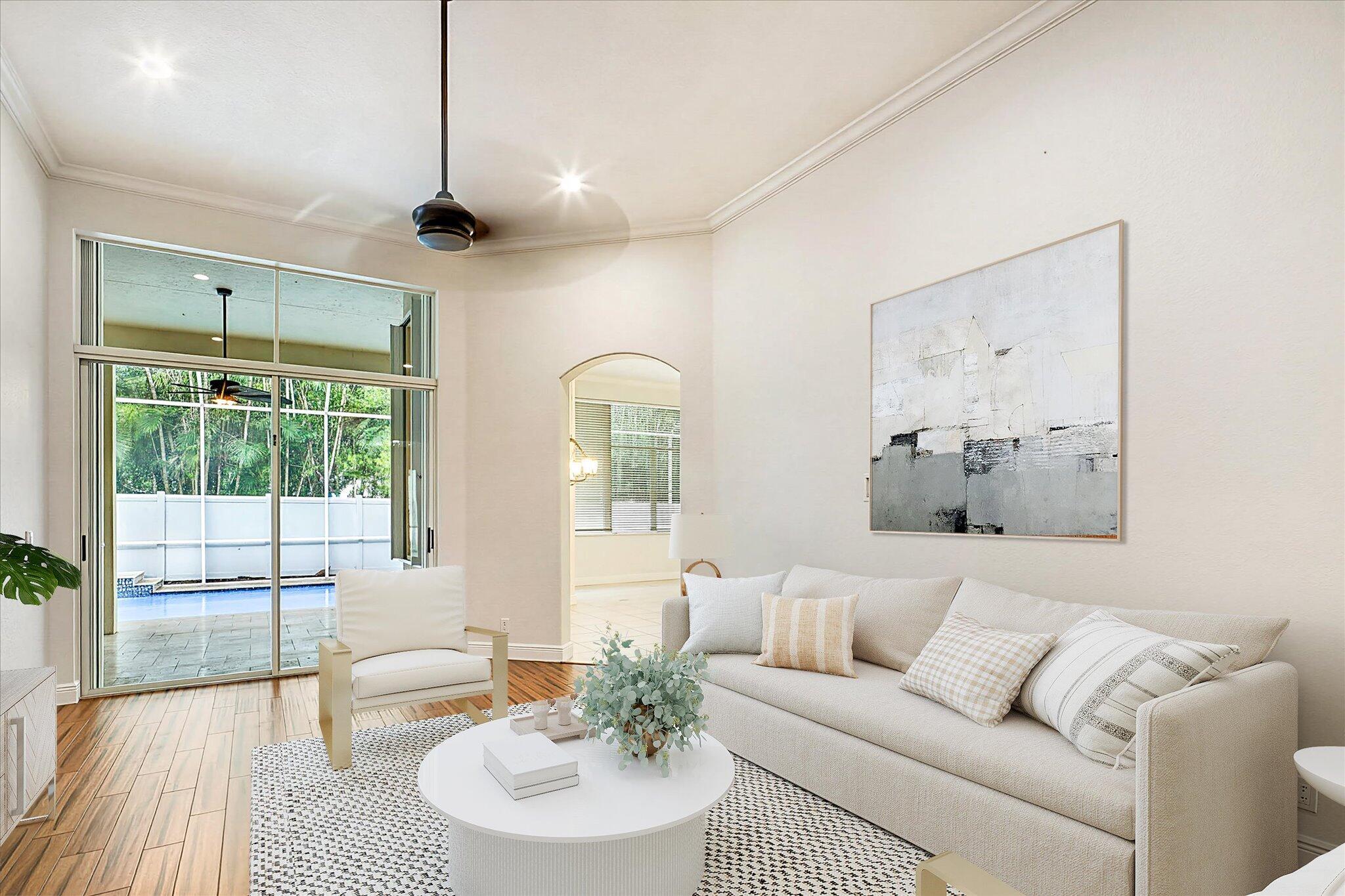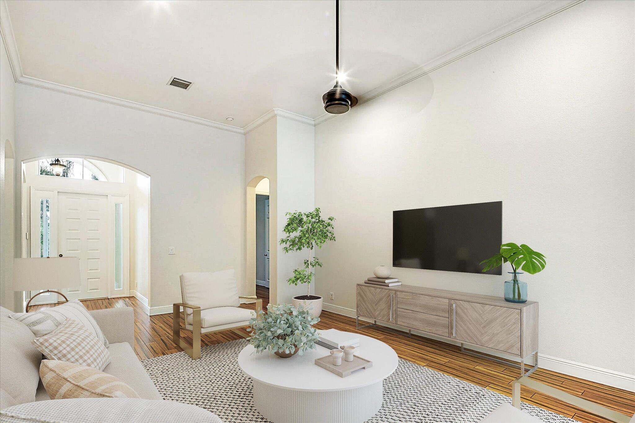 Welcome to 6973 Finamore Circle -- a beautiful single-story home set on a quarter acre pie-shaped cul-de-sac lot in the highly desirable neighborhood of Journeys End. Designed for comfort, privacy, and effortless indoor-outdoor living, this 5-bedroom residence (plus a private sitting room off the primary suite) offers 3 full bathrooms, a triple-split floor plan, and approximately 3,000 square feet of thoughtfully appointed space.Inside, you're greeted by soaring 12-foot ceilings, elegant tray ceilings, and crown molding throughout, all complemented by bamboo floors, fresh paint, new fixtures, and an abundance of natural light. The renovated kitchen shines with quartz countertops, glass backsplash, a smart refrigerator, a never-used double oven, and exceptional storage.