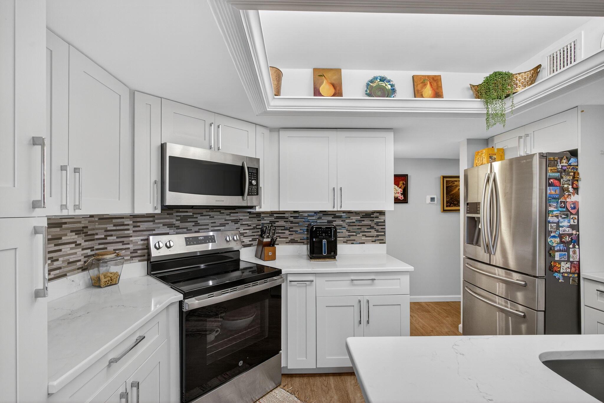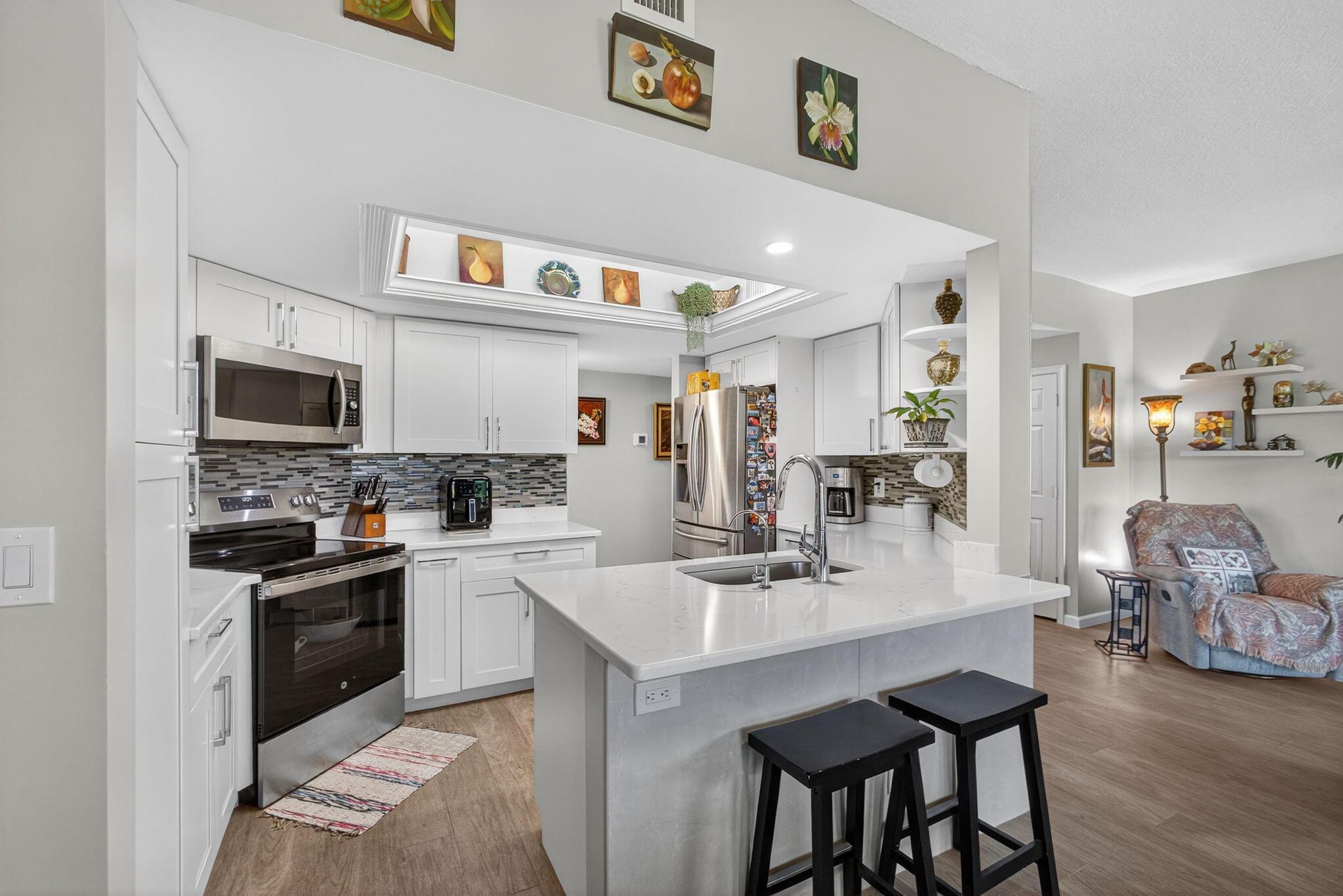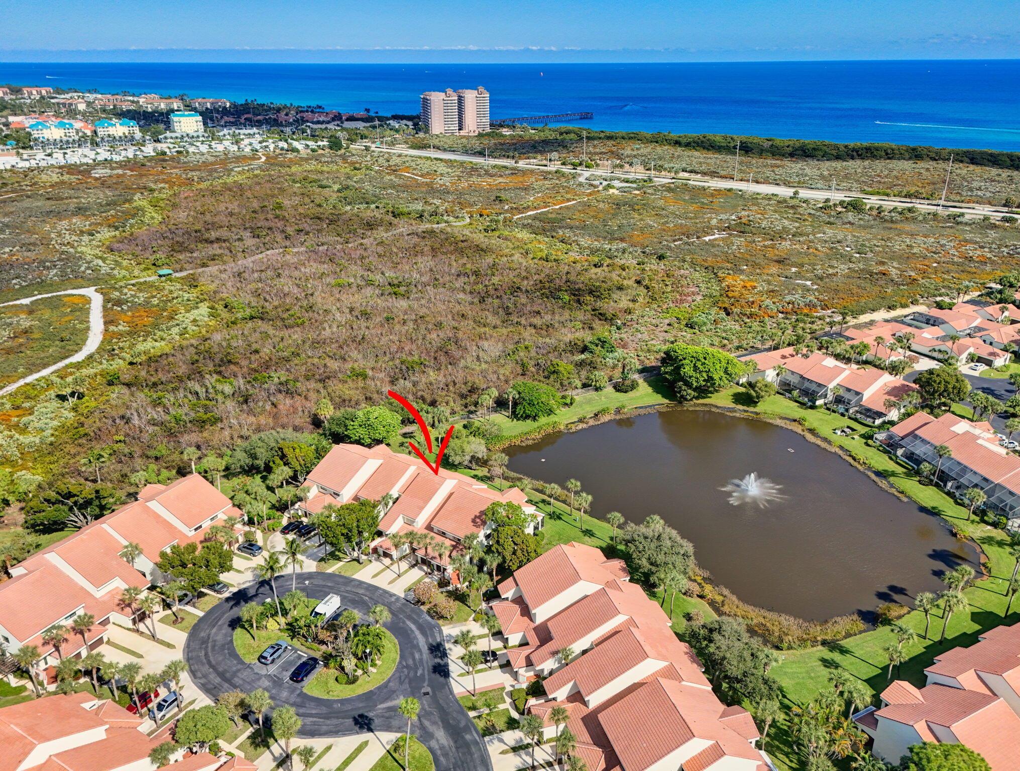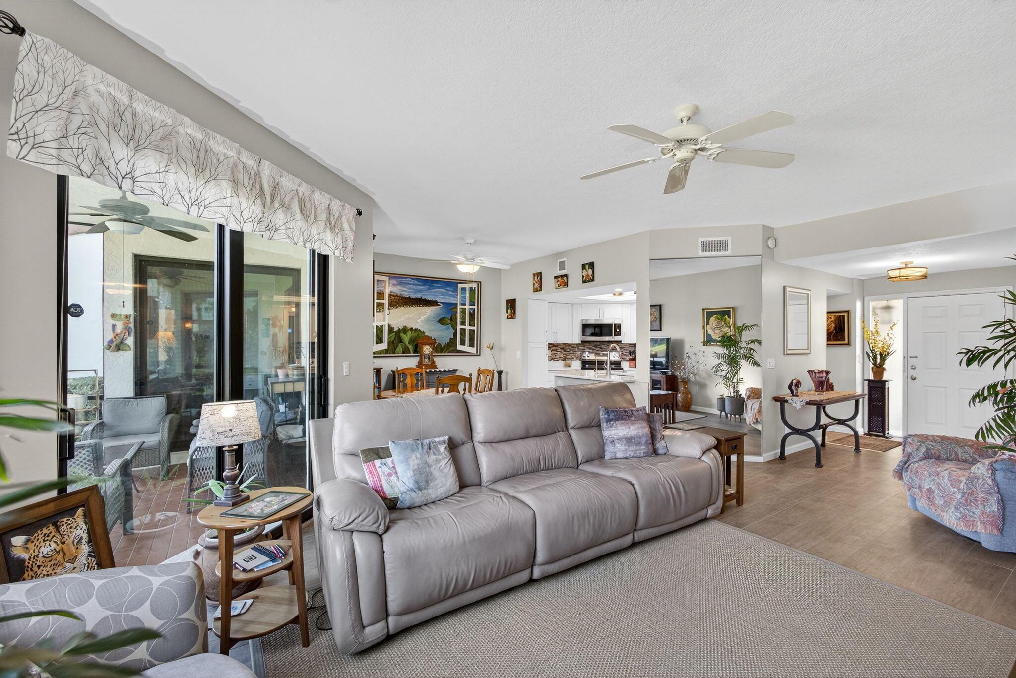 Experience sophisticated coastal living in this elegantly upgraded waterfront residence in the highly coveted Sea Oats of Juno Beach. Overlooking a tranquil preserve and shimmering pond, this 2BD, 2BA home with a 1-car garage features a screened-in porch, perfect for enjoying refreshing ocean breezes and just a short walk to the beach. Inside, the chef-inspired kitchen showcases quartz countertops, premium Samsung appliances, soft-close cabinetry, and designer lighting accenting a crown-trimmed tray ceiling.The primary suite is a serene retreat with preserve views and a beautifully renovated bath, while the guest suite offers custom closet built-ins and fresh modern finishes. Additional luxury upgrades include PGT impact windows (2020), new HVAC and water heater (2025),