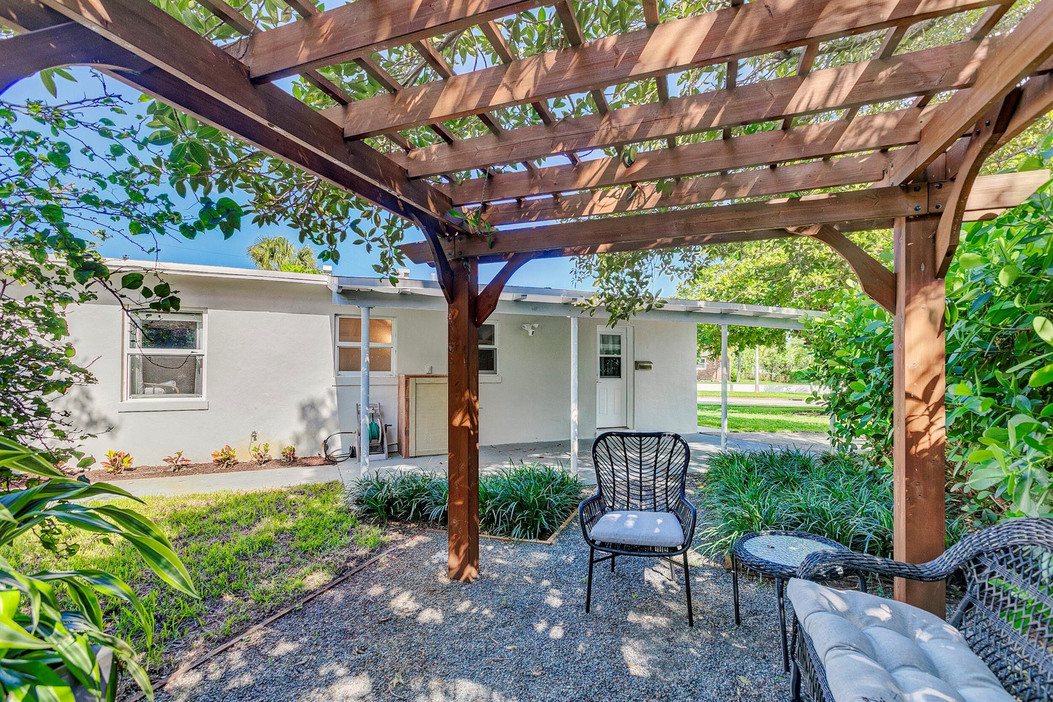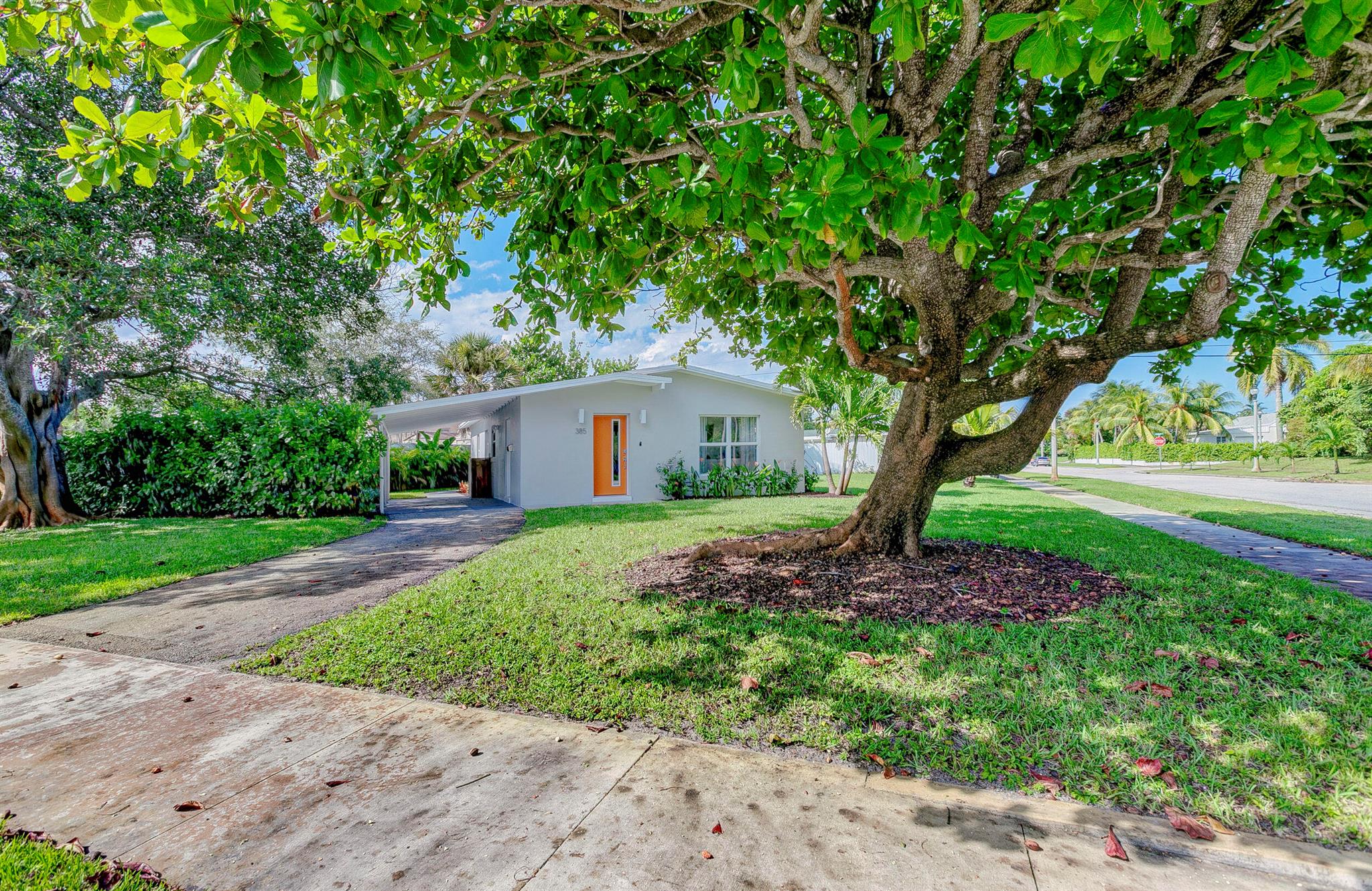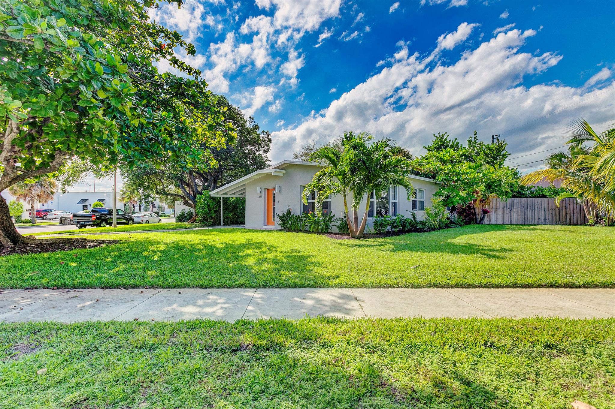 SoSo Mid Century Modern - move in ready! This charming bungalow features 3 bedrooms, 1 bathroom and lots of natural light on a beautiful, corner 8,700 sf lot. Some of the many upgrades include the renovated kitchen & bath, impact rated windows, tile floors and energy efficient a/c. Enjoy this property as is, expand or tear down and build your dream home - this neighborhood is flooded with many renovated homes as well as new construction. Great location near Flagler Drive, restaurants, shops, beaches, The Park, City Place and much more.