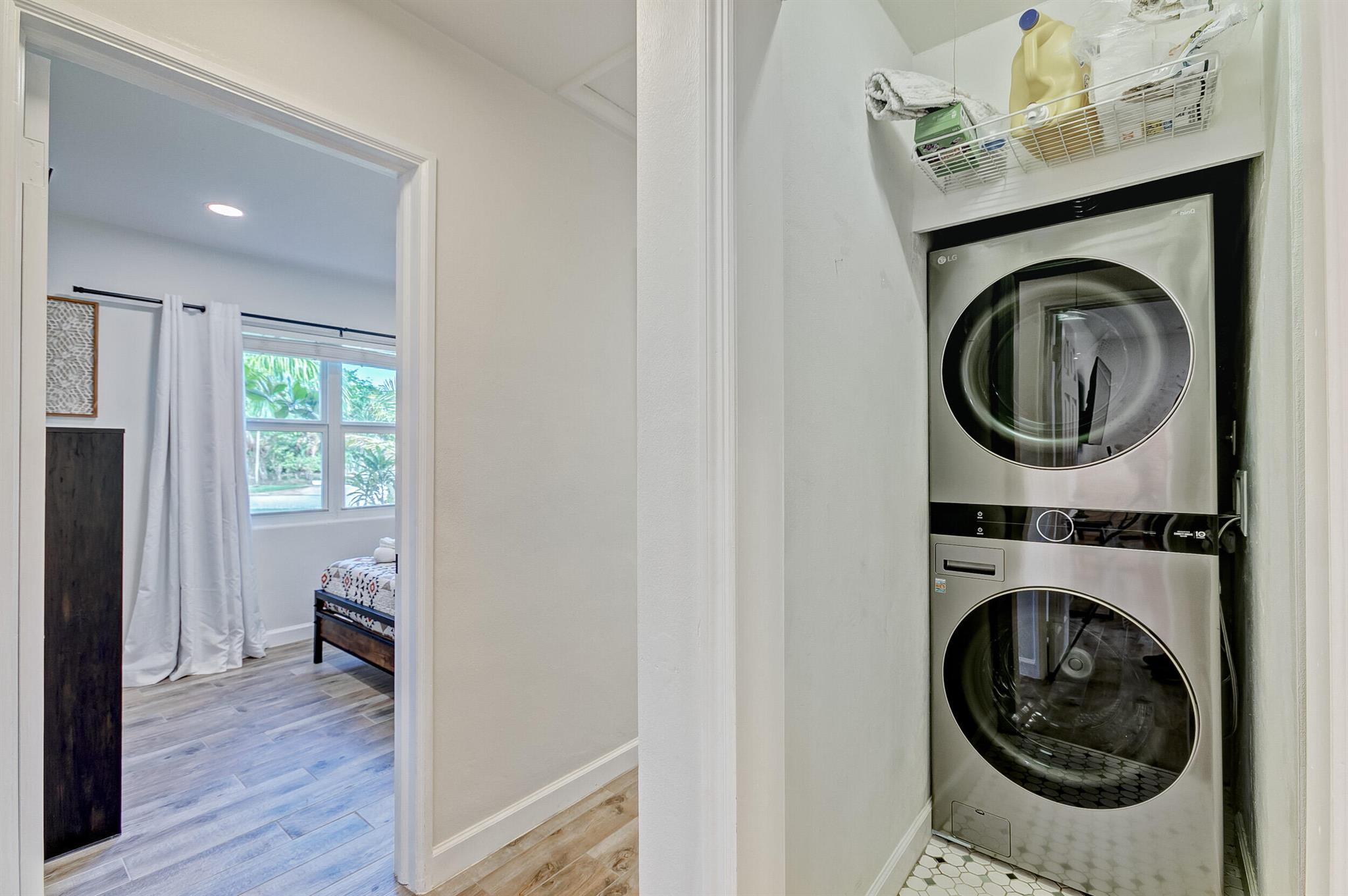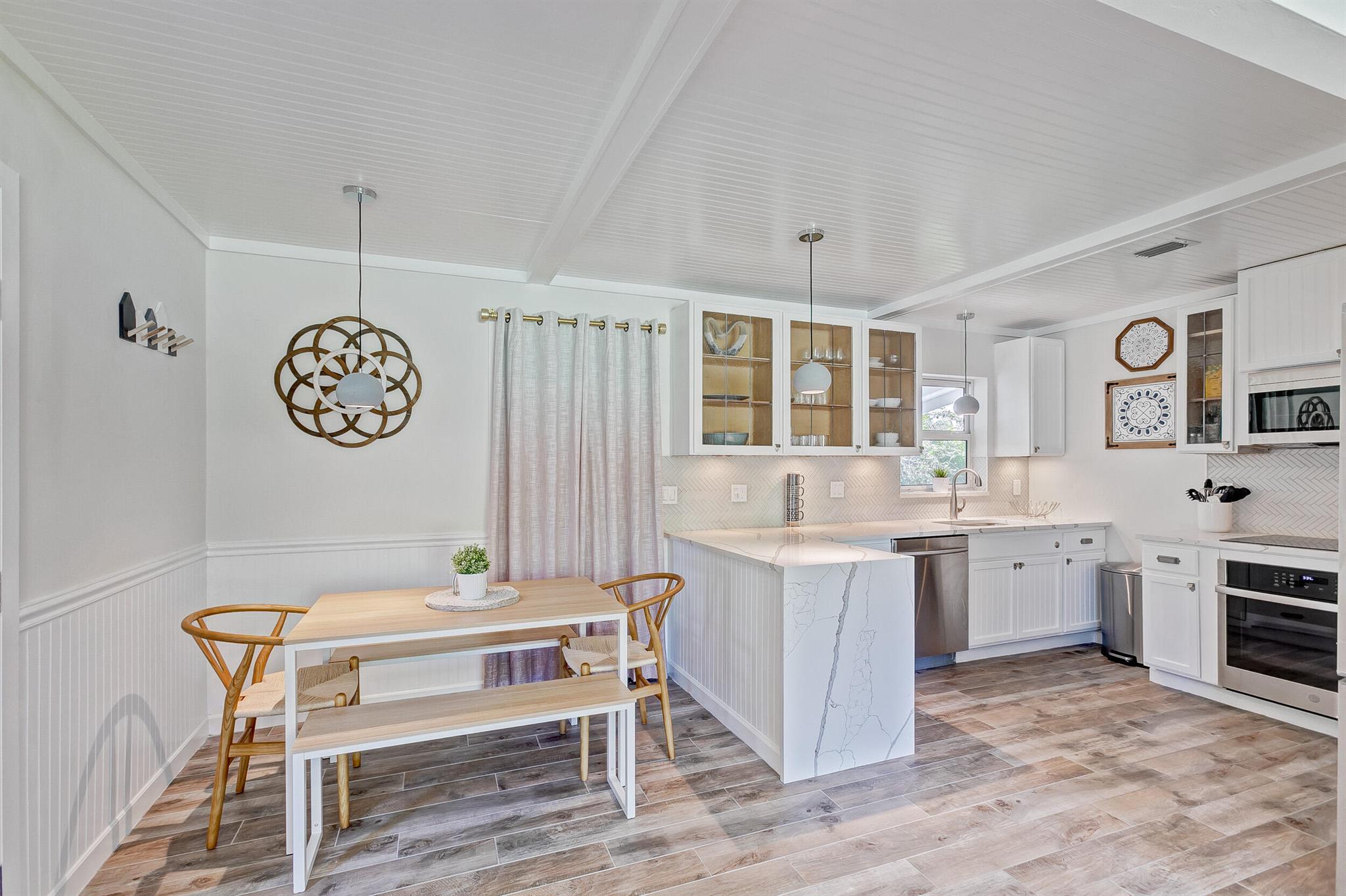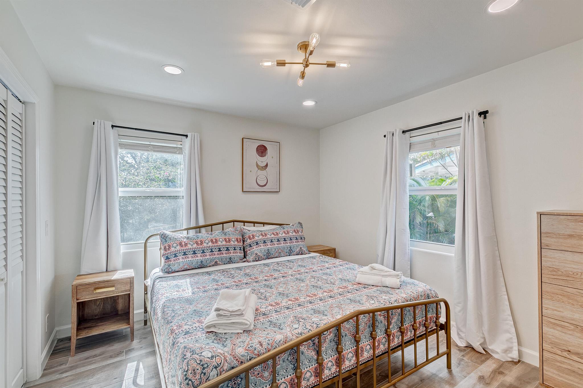 SoSo Mid Century Modern - move in ready! This charming bungalow features 3 bedrooms, 1 bathroom and lots of natural light on a beautiful, corner 8,700 sf lot. Some of the many upgrades include the renovated kitchen & bath, impact rated windows, tile floors and energy efficient a/c. Enjoy this property as is, expand or tear down and build your dream home - this neighborhood is flooded with many renovated homes as well as new construction. Great location near Flagler Drive, restaurants, shops, beaches, The Park, City Place and much more.