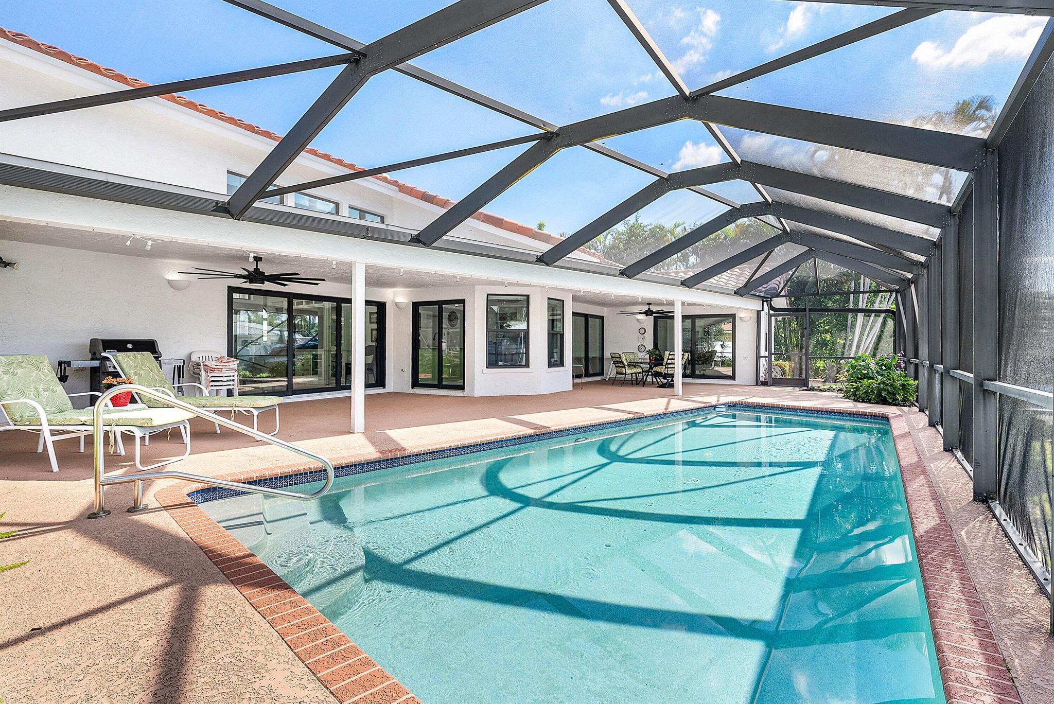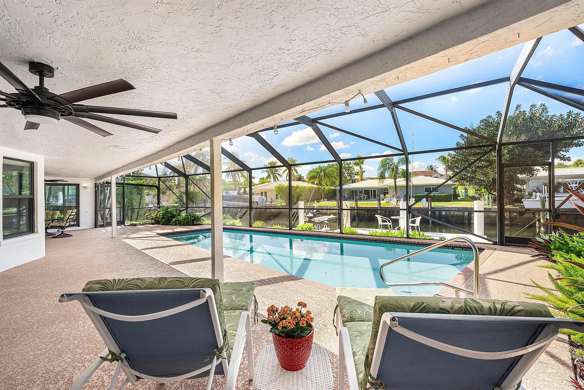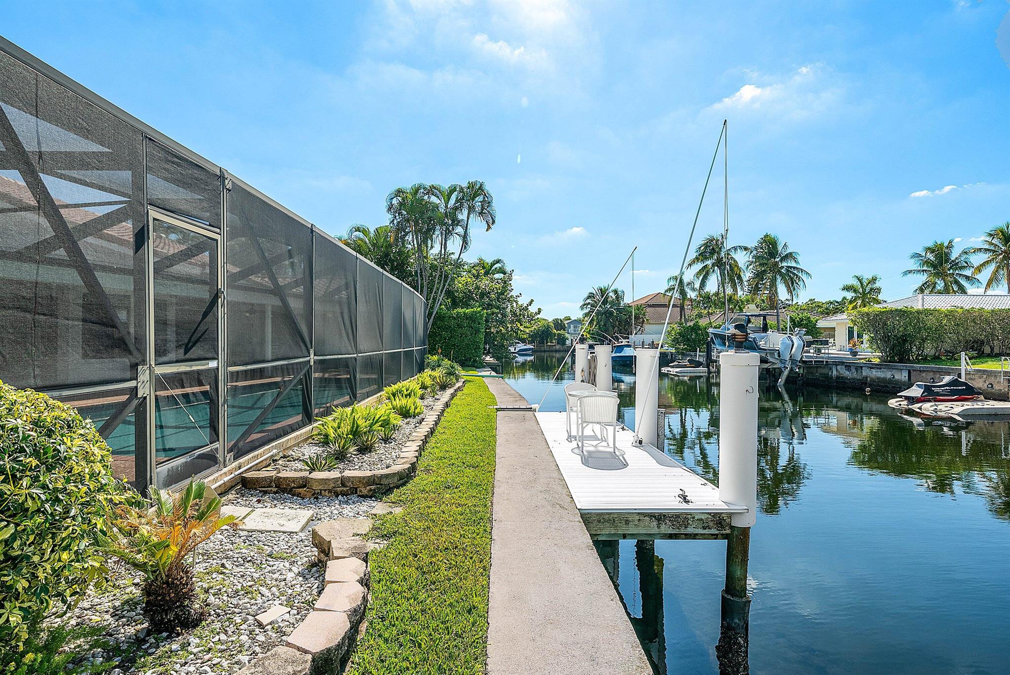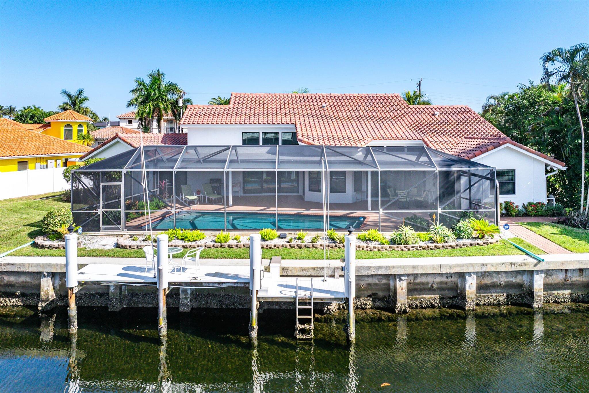Discover an exceptional opportunity in Caribbean Keys with 130 feet of prime deepwater frontage, just one canal off the Intracoastal. Built in 1988, the residence features soaring vaulted ceilings in the living room, family room, and kitchen, along with all hurricane-impact windows, sliders, and garage door. The desirable split-bedroom floor plan includes a spacious, opened-up kitchen with Corian countertops, a new Bosch dishwasher, a newer microwave, breakfast nook, formal dining area, formal living room, and a comfortable family room. The exterior was freshly painted two years ago, and the screened pool and patio area offer an inviting space to relax, complete with a generous covered section and heated pool. Additional highlights include a brick paver driveway, easy mechanical access