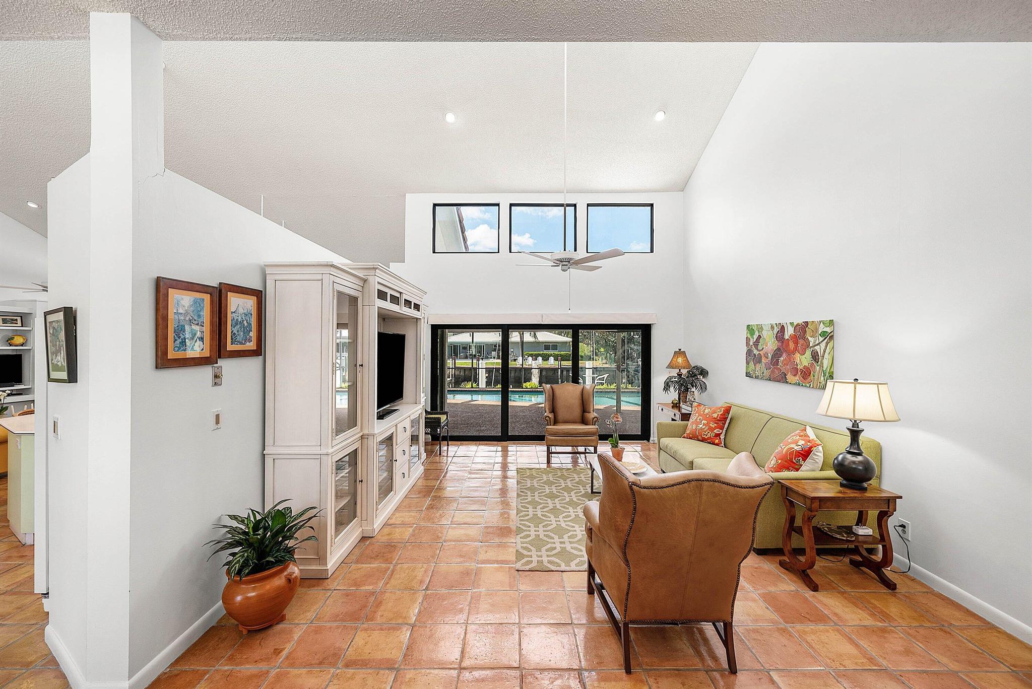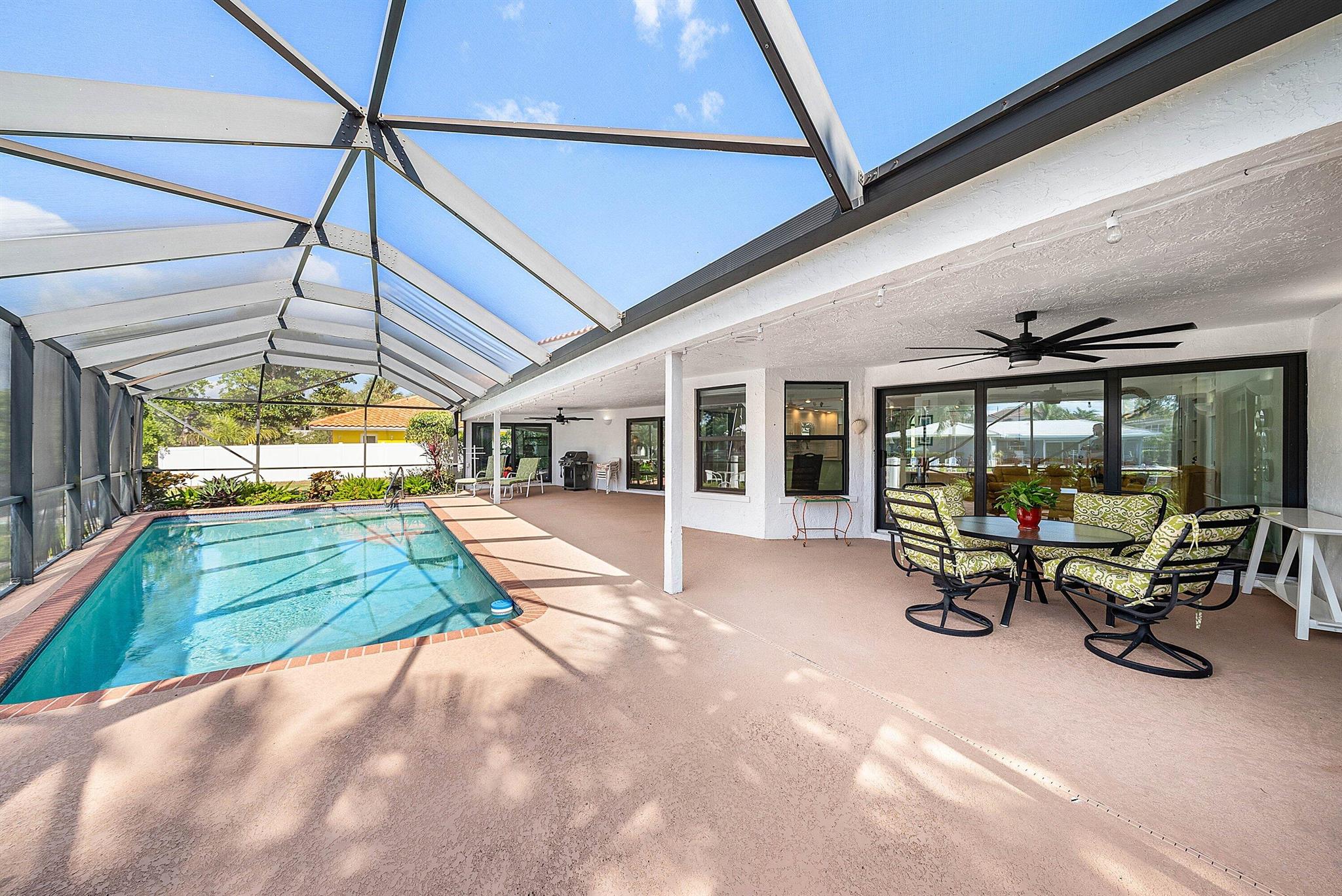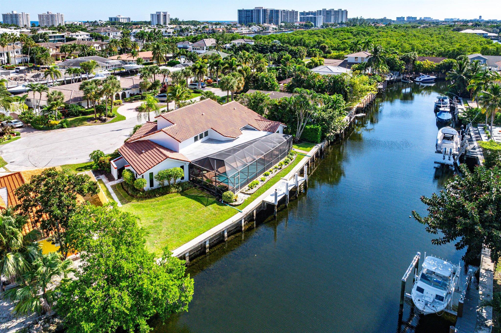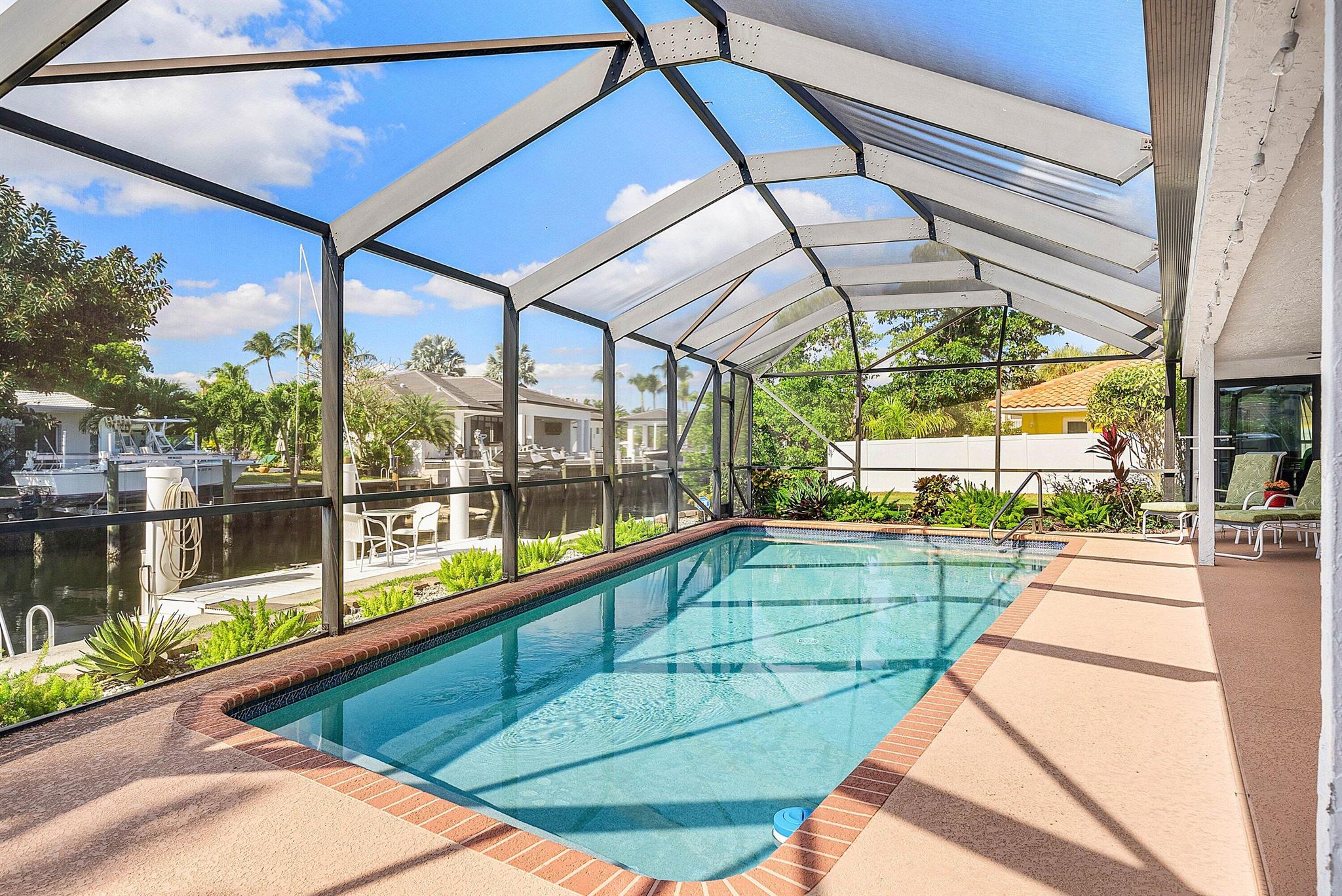 Discover an exceptional opportunity in Caribbean Keys with 130 feet of prime deepwater frontage, just one canal off the Intracoastal. Built in 1988, the residence features soaring vaulted ceilings in the living room, family room, and kitchen, along with all hurricane-impact windows, sliders, and garage door. The desirable split-bedroom floor plan includes a spacious, opened-up kitchen with Corian countertops, a new Bosch dishwasher, a newer microwave, breakfast nook, formal dining area, formal living room, and a comfortable family room. The exterior was freshly painted two years ago, and the screened pool and patio area offer an inviting space to relax, complete with a generous covered section and heated pool. Additional highlights include a brick paver driveway, easy mechanical access