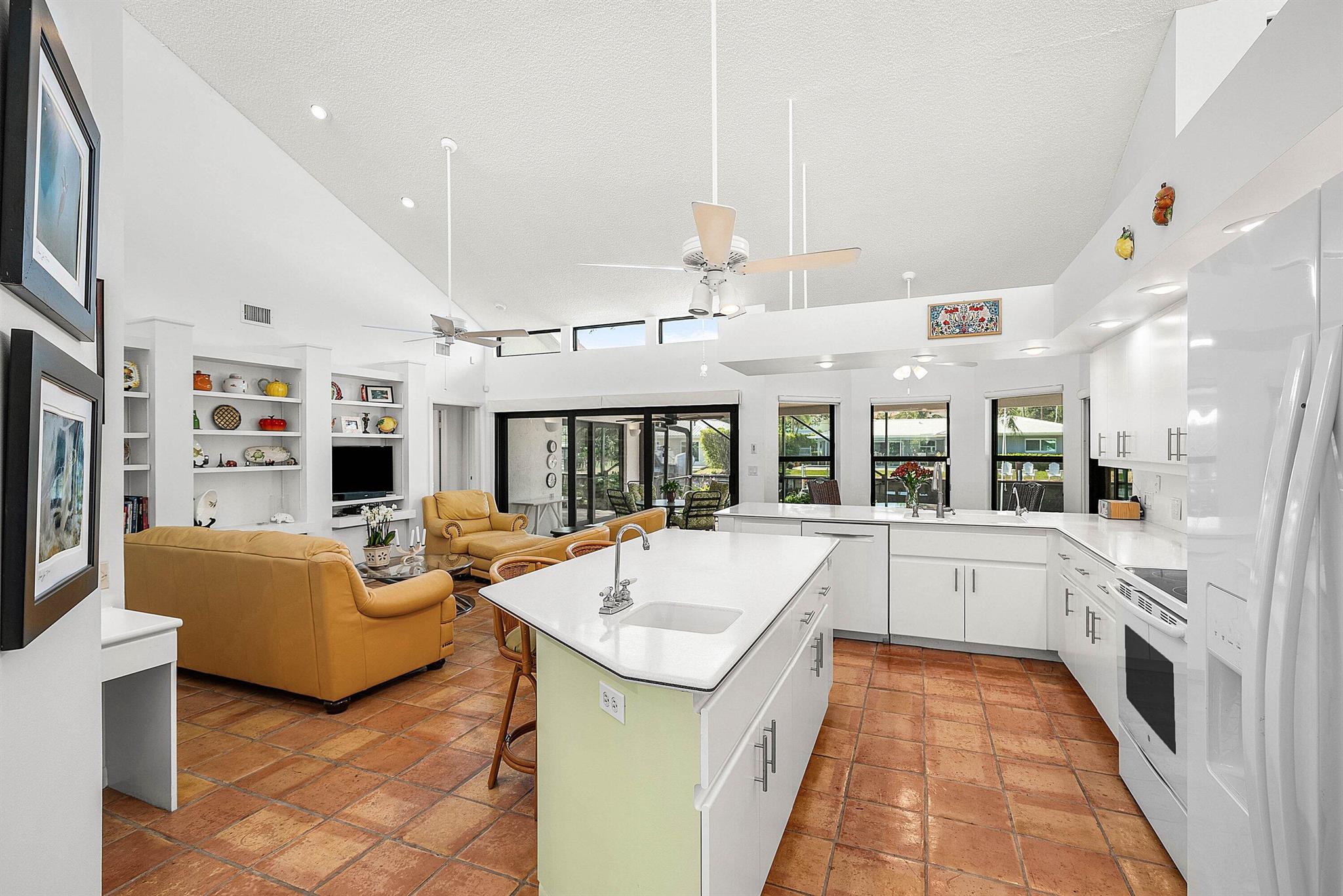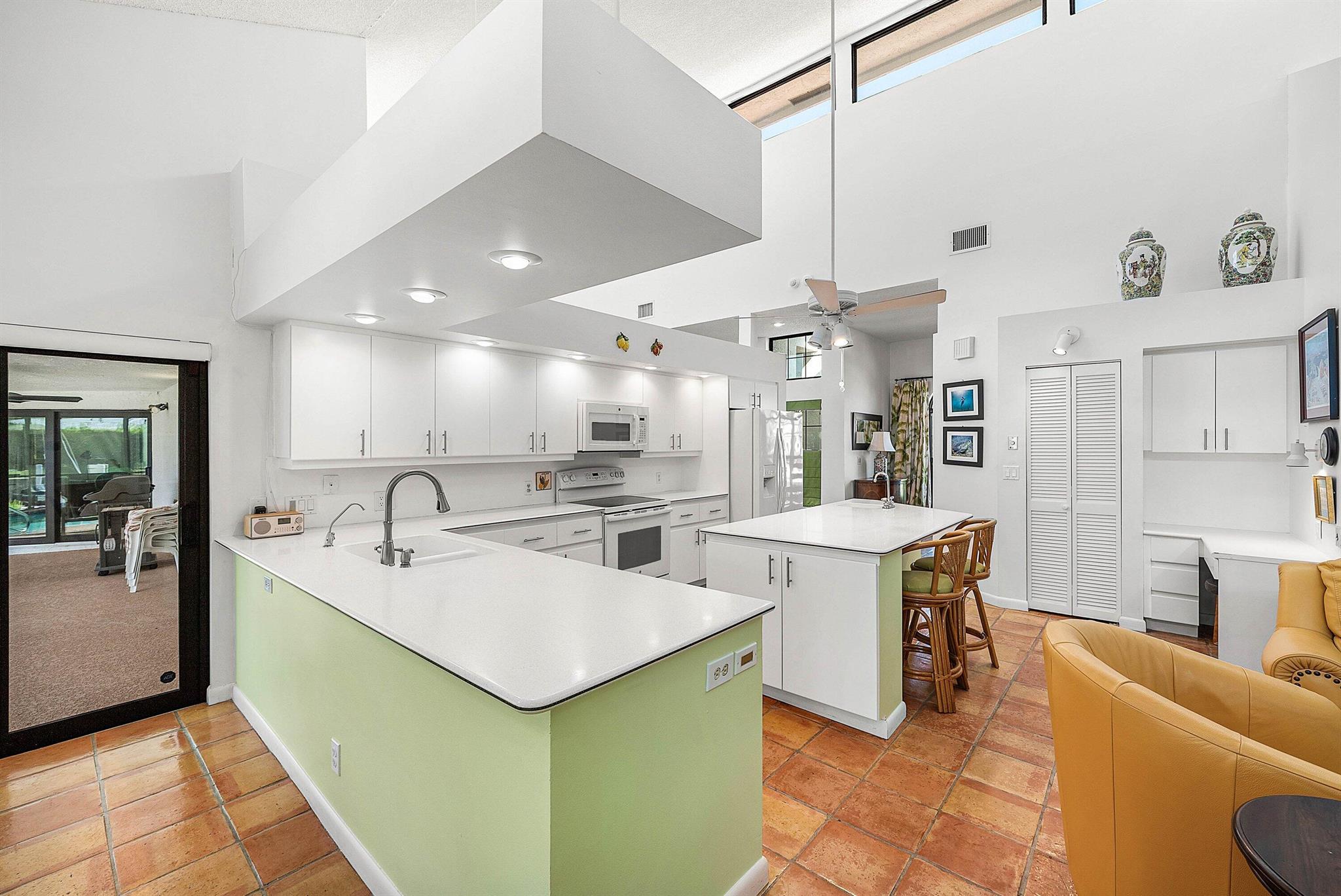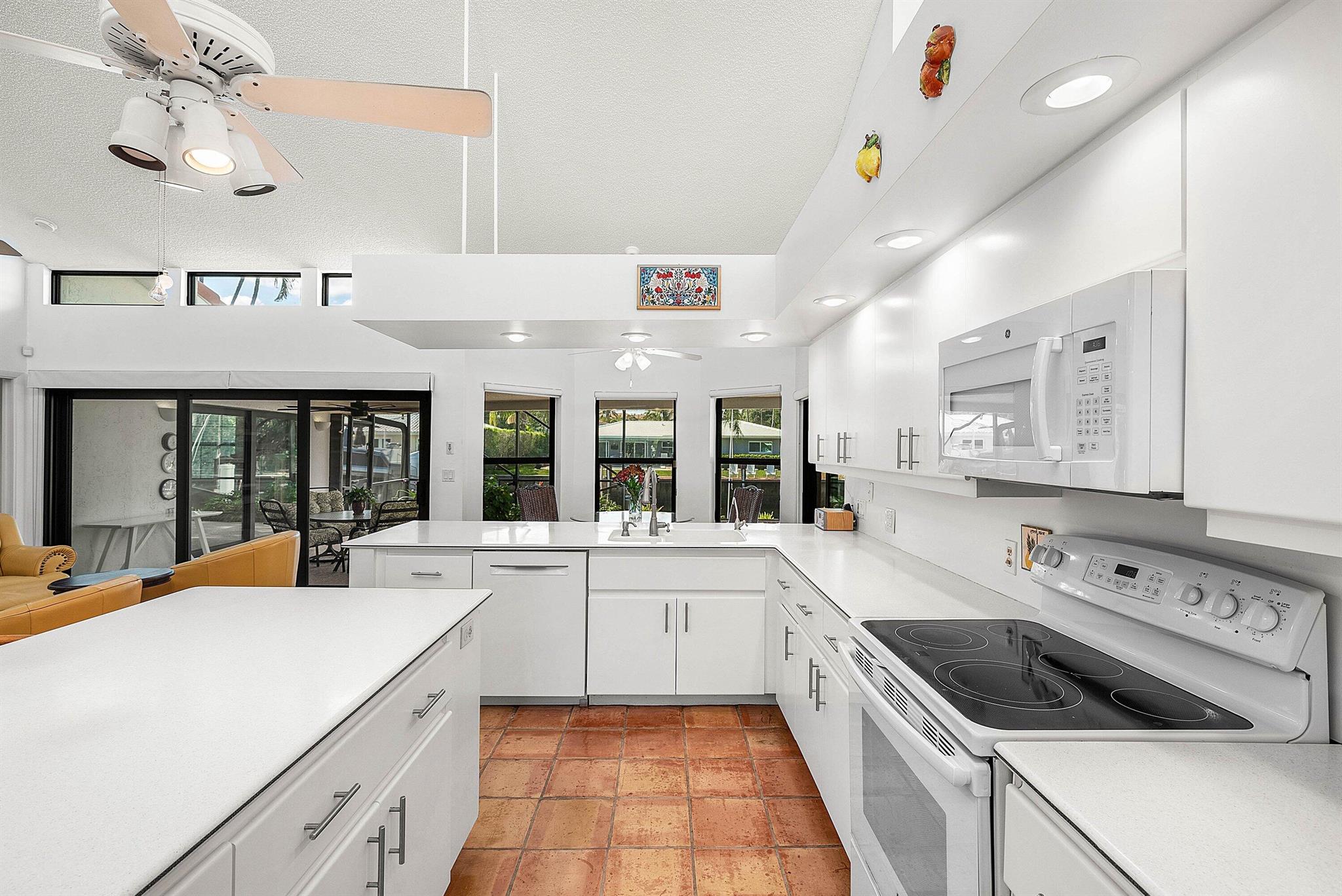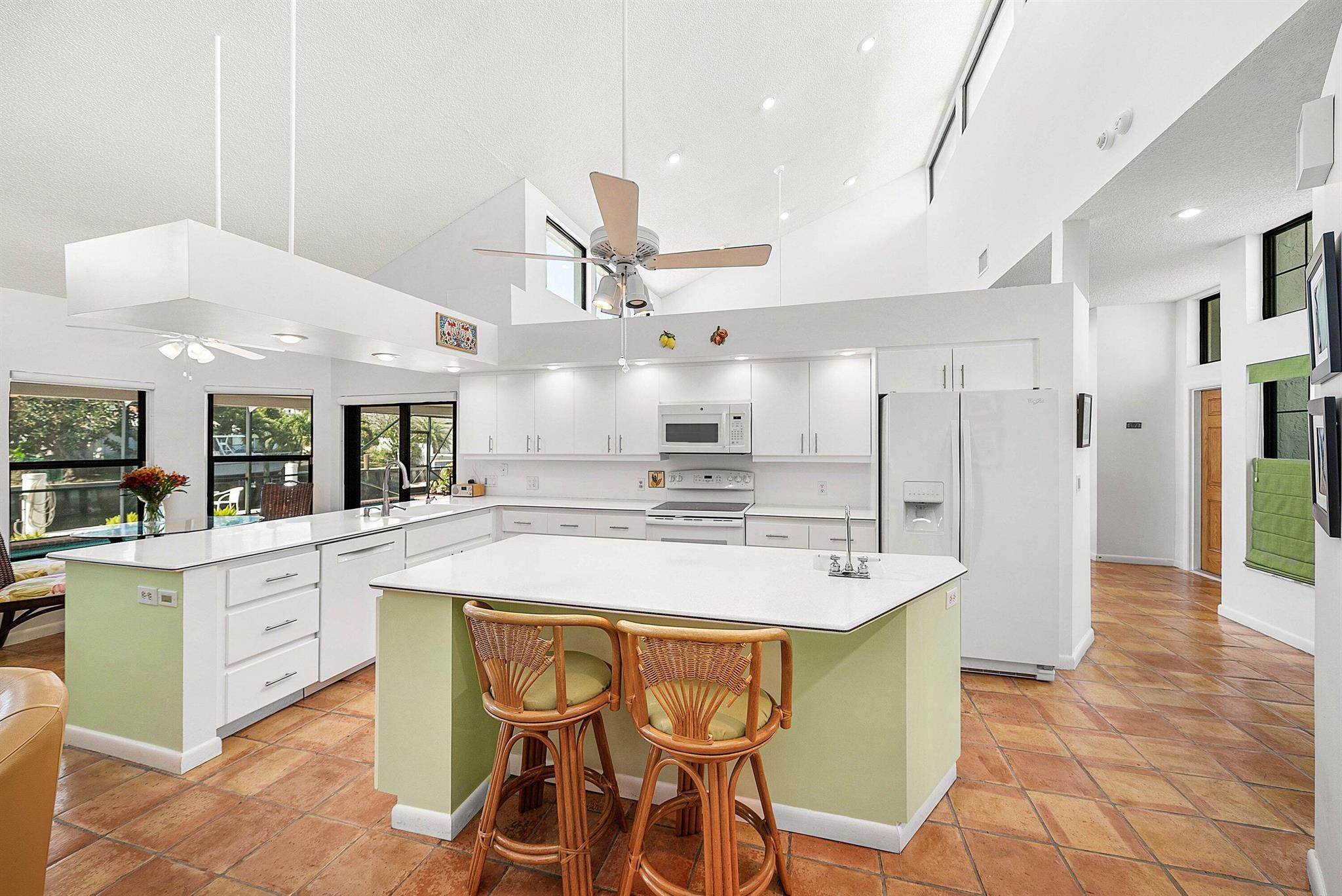 Discover an exceptional opportunity in Caribbean Keys with 130 feet of prime deepwater frontage, just one canal off the Intracoastal. Built in 1988, the residence features soaring vaulted ceilings in the living room, family room, and kitchen, along with all hurricane-impact windows, sliders, and garage door. The desirable split-bedroom floor plan includes a spacious, opened-up kitchen with Corian countertops, a new Bosch dishwasher, a newer microwave, breakfast nook, formal dining area, formal living room, and a comfortable family room. The exterior was freshly painted two years ago, and the screened pool and patio area offer an inviting space to relax, complete with a generous covered section and heated pool. Additional highlights include a brick paver driveway, easy mechanical access