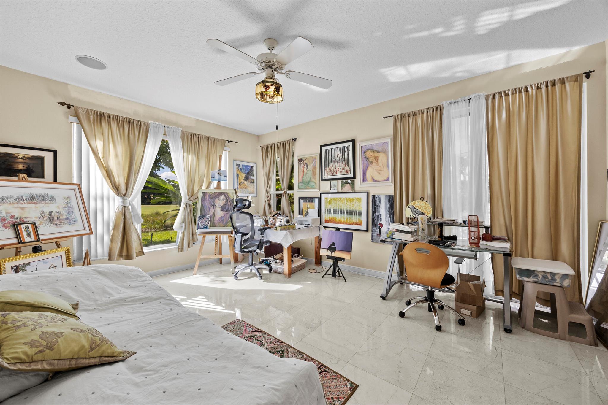 Spacious and living, situated on the 14th fairway of PGA's Palmer Course, with beautiful water and fairway views. The residence features 4 bedrooms and 4.5 bathrooms, including two master suites--upper & lower level--providing ultimate comfort and privacy. With 3,432 sq ft of living space & 4476 under air, the home boasts high-end hmarble floors & hardwood throughout. The open and spacious floor plan includes kitchen with plenty of counter & Cabinet space an adjacent eating area, and breakfast bar and a formal dining area, ideal for entertaining. Additional highlights include a two-car garage, ample closet storage, a stylish loft, and a luxurious, airy design that blends elegance with functionality. You'll love the serenity patio. Room for a pool.
