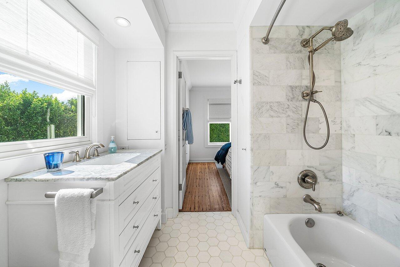 Stunning landmarked jewel blending timeless architecture with modern luxury on a pristine ocean block in the heart of town. Sited on a 12,825 sq ft lot, this renovated Mediterranean Revival estate rises 3 stories and includes a 4-bedroom, 4.5-bath main residence and a beautifully appointed two-bedroom/two-bath guest house. Filled with natural light and exquisite details, the home features a double living room with fireplace, 10' ceilings, formal dining room, library, and inviting family room. Chef's kitchen with Lacanche range, marble counters, custom island and built ins. French doors throughout lead to a covered coquina stone patio and heated salt water pool. Primary suite with marble fireplace, walk-in closet and elegant bath. 3 additional en-suite bedrooms, light oak wood floors,