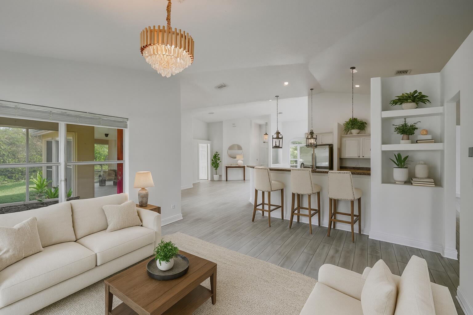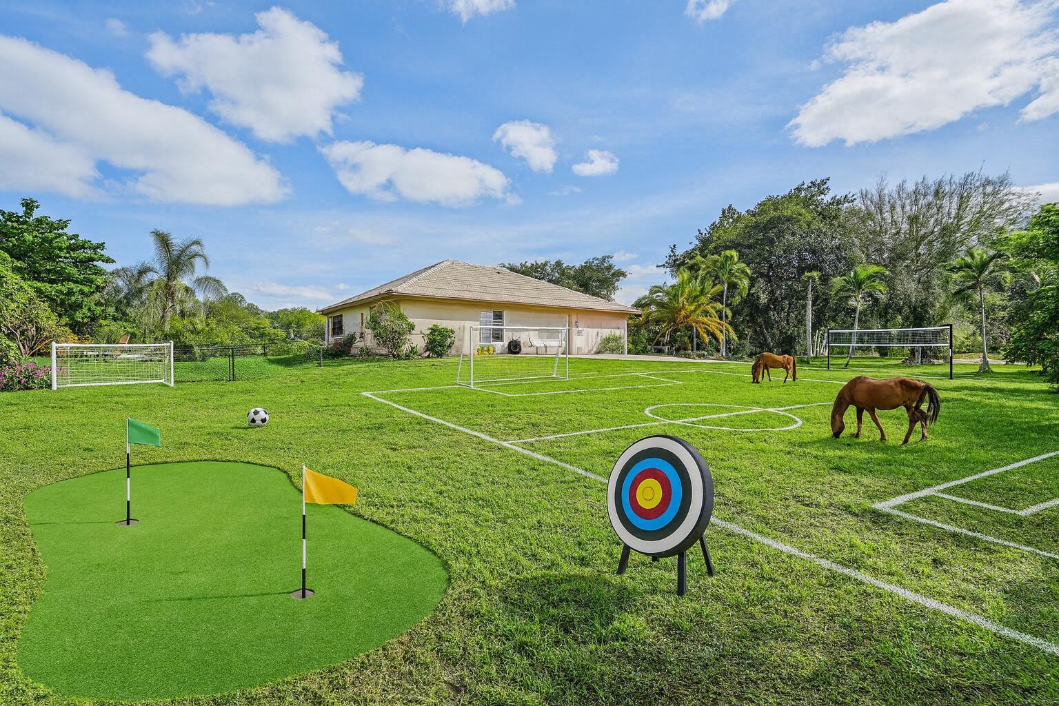 Upscale area 10 min beach airport,Just renovated, high ceilings,Equestrian ,build 2 quest homes , selling on lot value , 3000 sq pool home poured concrete construct, over 1.2 acr corner lot facing mansion ,elegant open floor plan. formal dining , living rm, high ceilings, breakfast nook, granite bar, family room - brand-new grey cork floors. appliances , new crystal chandeliers, blinds, stainless applia, new high-tech A/C , split floor plan , garage is living space under A.C , jacuzzi and large screened L-shaped patio . New chain link Fence , maintenance-free 100+ years. Premier location 5 minutes from Town , shops, restaurants , best schools , golf , basketball ,play groud , racquetball , no city tax , dead end very quit street ,city water paved rd endlesposbi wvirtual stag Must see !