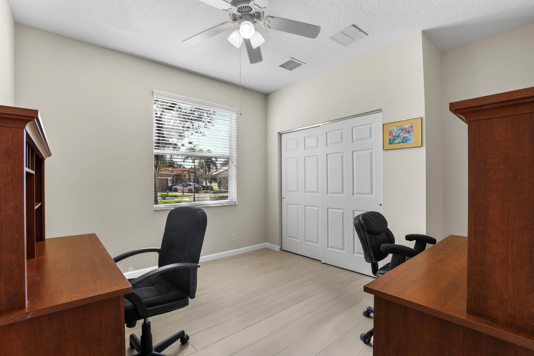 Beautifully updated Massimo model offering 3 full bedrooms, 2.5 baths, with bright, open living spaces enhanced by new wood-look ceramic tile in all bedrooms. With tranquil lake and nature views, the expanded screened lanai sets the stage for everything from quiet morning coffee to effortless entertaining. The spacious primary suite includes custom built-ins and generous closets, while the additional bedrooms are ideal for guests or a home office. The updated kitchen features white cabinetry, quartz counters, and stainless appliances--perfect for hosting. Furniture is negotiable, making this an easy option for seasonal or year-round living. Bellaggio's renovated clubhouse, resort-style pools, cafe, fitness center, tennis, pickleball, and more complete the lifestyle. Welcome Home!