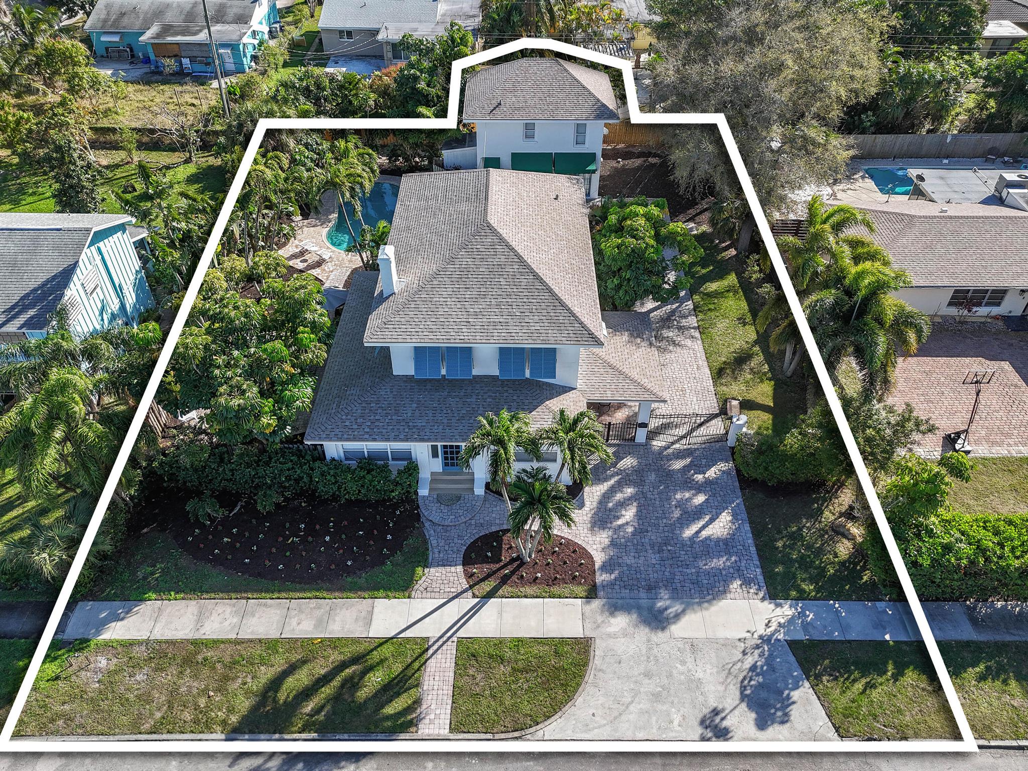 Rare opportunity to own a historic spacious income generating property in the heart of Lake Park, just minutes from North Palm Beach. This beautifully maintained estate includes a generously sized single family home plus a detached two story guest house offering exceptional rental flexibility in one of the area's most rapidly transforming neighborhoods.The main residence offers approximately 3600 square feet and features four bedrooms, three full bathrooms, a dedicated laundry room, and a brand new roof installed in 2024. The open layout flows seamlessly into the gated backyard retreat complete with an inground pool, mature landscaping, and ample outdoor space for entertaining or relaxing.The detached guest house includes two private rental ready units.