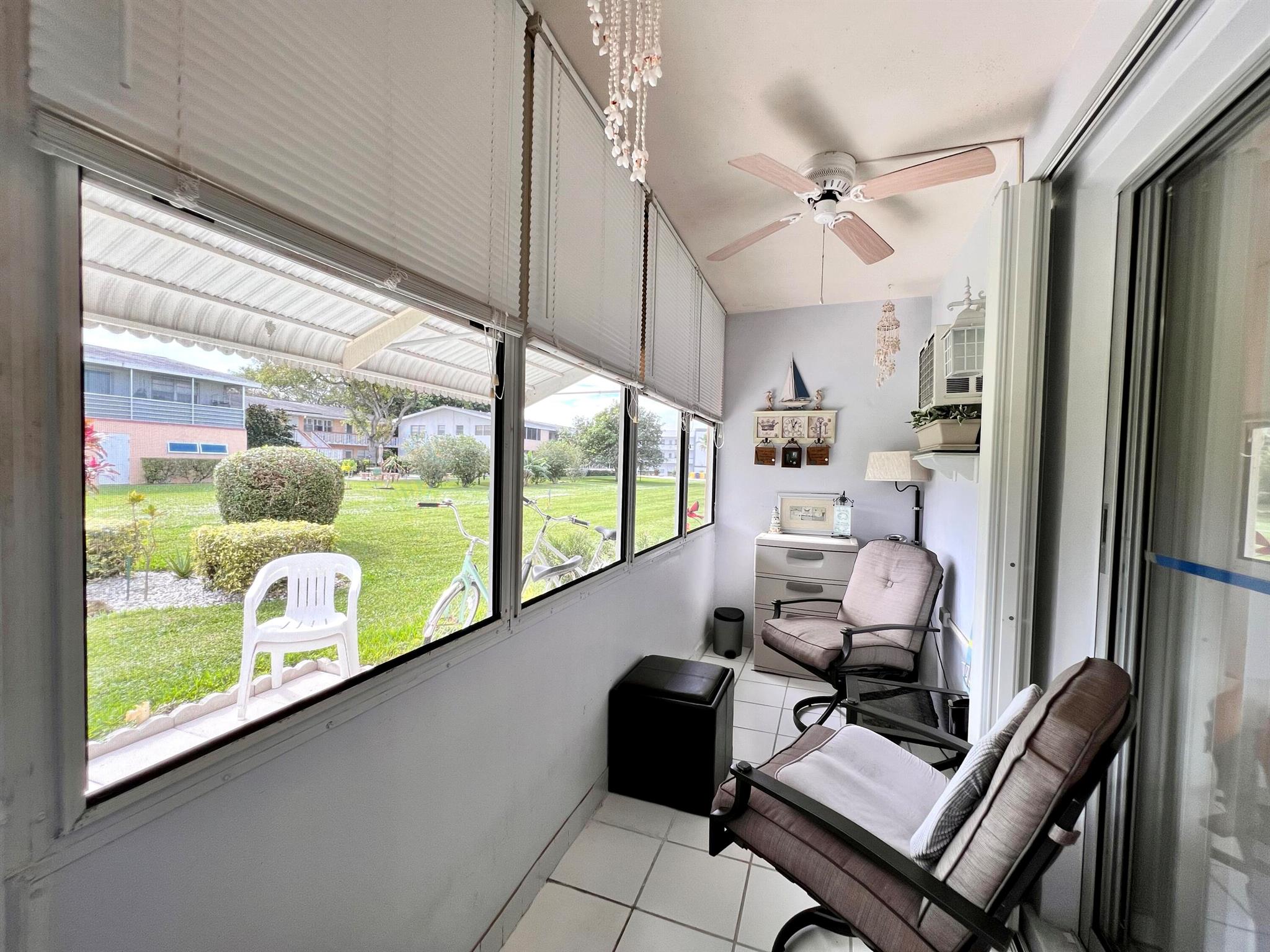 FANTASTIC OPPORTUNITY IN 55+ CENTURY VILLAGE! Amazing Location! Move Right In & Enjoy Florida Living! Cheerful Light & Bright FIRST FLOOR 1/1.5. Beautifully Maintained Condo W/ Soothing Color Palette & Coastal Flair. Neutral Tile Flooring Flows Throughout. Large Bedroom Suite W/ Access to Lanai, Wall of Closets for Plenty of Storage, and Full Ensuite Bath. Long Lanai Offers Extra Space and Access to Private Exterior Patio W/ Pretty Views of Manicured Grounds. Accordion Shutters All Around for Hurricane Protection. Sold Finished W/ Contents As Shown (Personal Items Excluded) Nicely Maintained Building W/ NEW ROOF 2024) and Private Resident Patio. Great Location Close to the Somerset Pool, Main Clubhouse, and Haverhill Gate. Century Village Is A Vibrant 55+ Community Centrally Located......