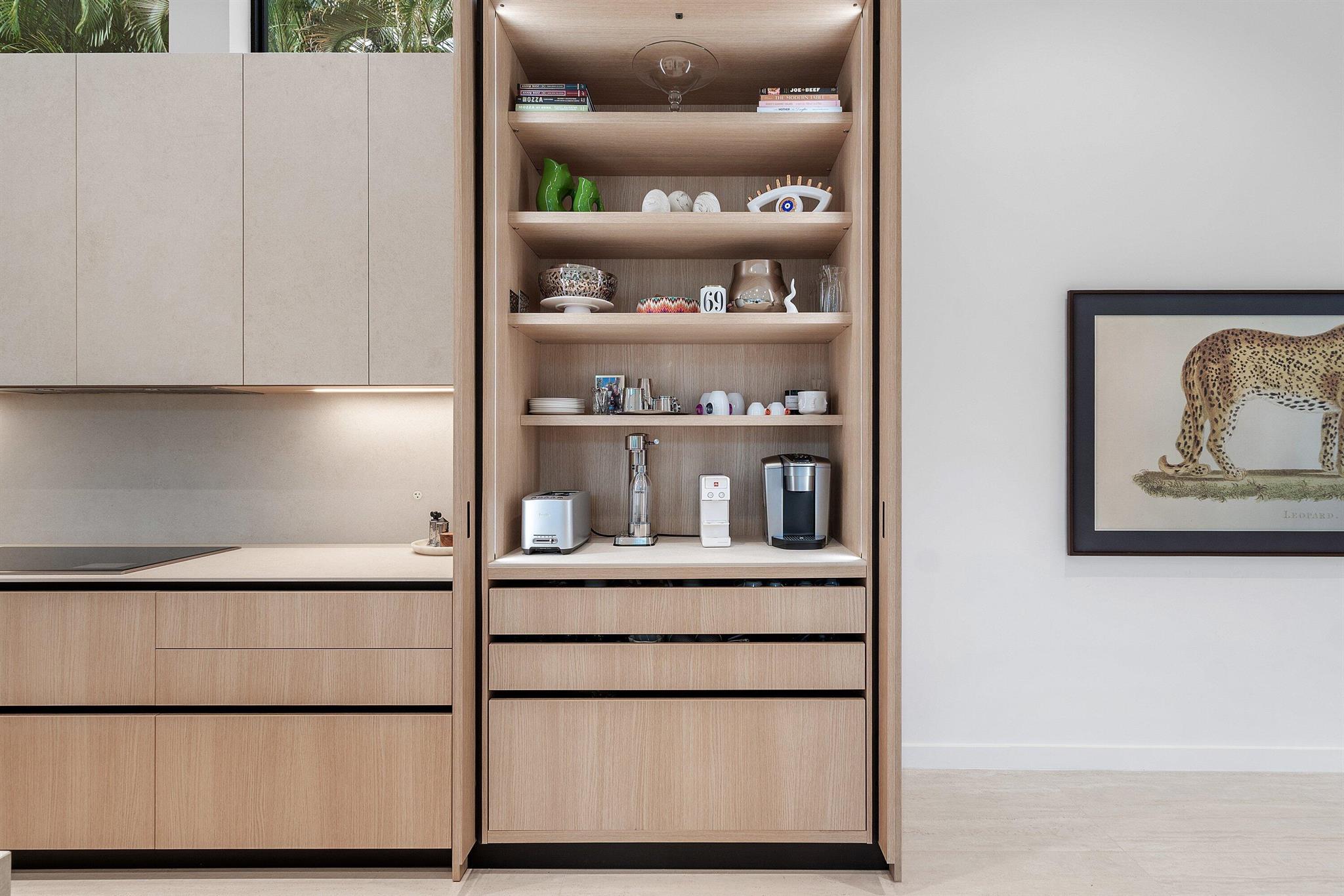 Located in the prestigious Central Boca community of Seasons, this exceptional home was renovated in 2025, and sits on a private, spacious lot. The home offers a phenomenal floor-plan with a downstairs Primary bedroom, which is a luxurious retreat with a spa-like bathroom and two walk-in closets. The Primary wing features an adjacent, separate home office with a beautiful view of the pool. On the other wing of the home, there is one guest bedroom and full bath downstairs (also serving as a cabana bath), and three beautifully designed bedrooms upstairs, plus a loft. Upon entrance, you are swept away with the breathtaking vaulted ceilings, large format tiles and dream Italian kitchen by Mia Cuccina- stunning white oak cabinetry and porcelain countertops and Sub Zero paneled appliances.