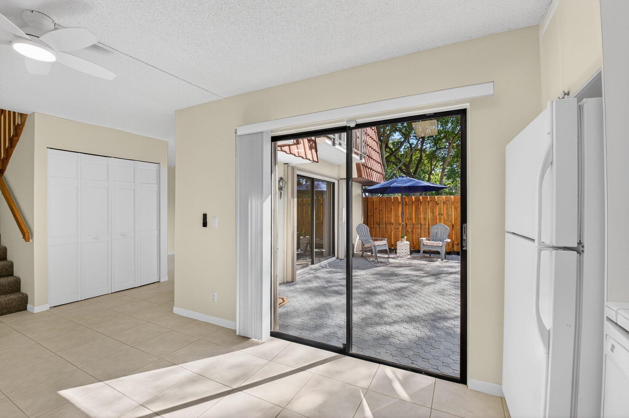 Investor Friendly as you can RENT RIGHT AWAY.BRAND NEW FENCE JUST INSTALLED offering privacy to dine al fresco on this patio and enjoy Florida's beautiful weather. This home offers hurricane accordion shutters for peace of mind. Neutral tile flows throughout home and NEW carpet on stairs. Peaceful and serene greenspace adjacent to this unit. Perfect for walking your dog or playing a game of catch. Pet friendly community accepting larger breeds up to 50 pounds. Delray Beaches Atlantic Avenue's vibrant coastal town offers a variety of restaurants, museums, nightlife and of course it's fabulous BEACHES! 10 minute drive to FLORIDA ATLANTIC UNIVERSITY. Easily access I-95 & major roads Don't miss your opportunity to purchase this unique condo that feels like a townhome & call this your home.