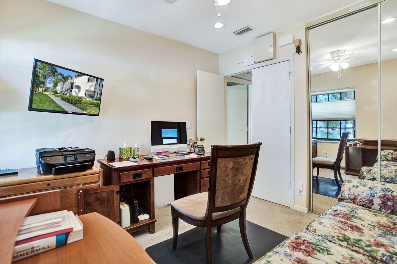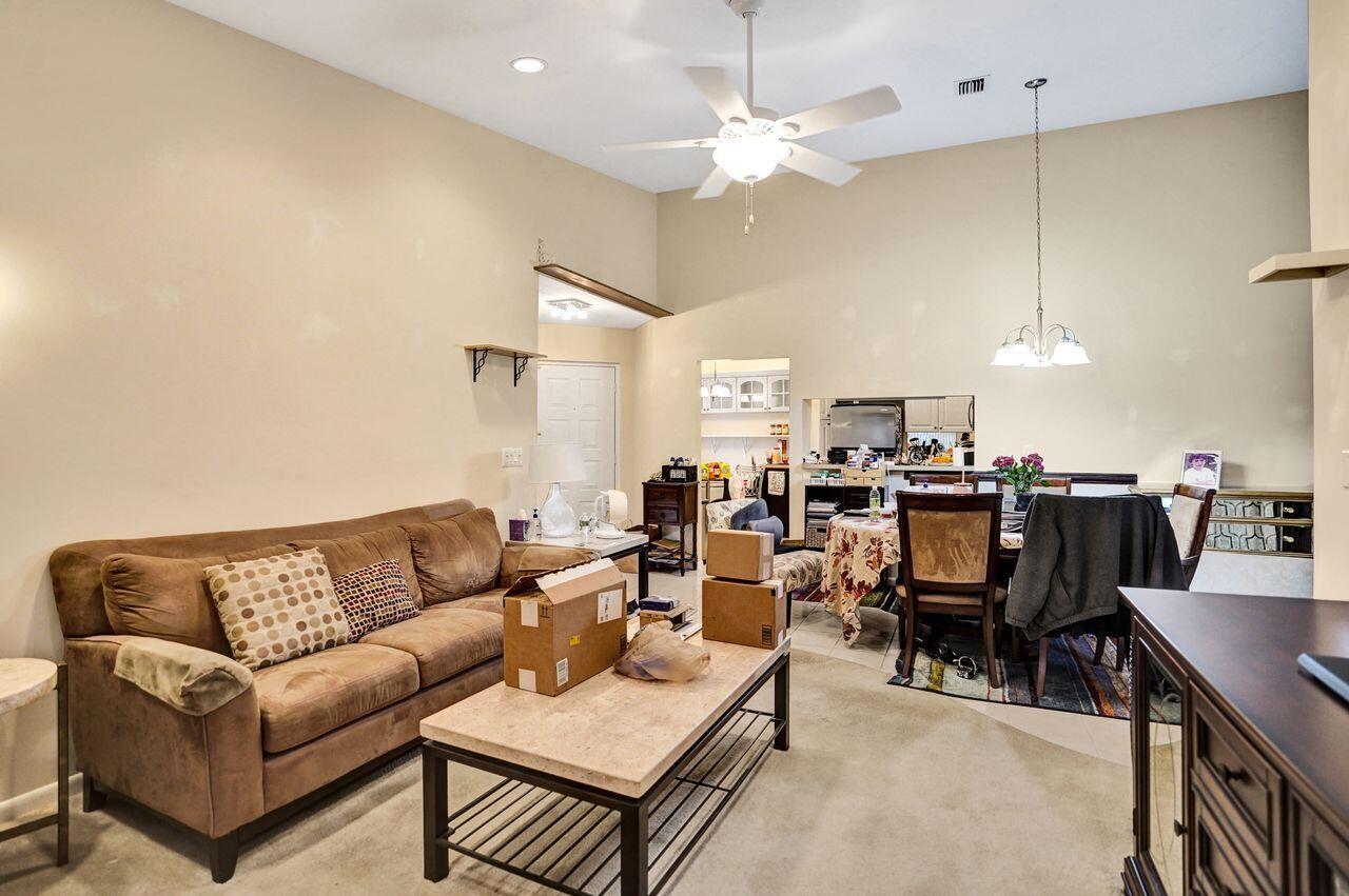 This charming 3-bed / 2-bath condo, offers a relaxing lifestyle in a vibrant, gated, all-ages community! This 2nd floor unit offers plenty of privacy and added space, including luxurious vaulted ceilings, convenient attic access for additional storage, professionally installed closets, shelving, custom recessed lighting, and additional switches and outlets spaced throughout. The fully-enclosed Florida room features impact windows and sliding doors, with custom shelving and ample space for use as a guest bedroom or home office. Unit is very close to assigned parking, trash/recycling bins, and mailbox, and a secondary pool location! Community clubhouse features a magnificent swimming facility, fitness center, restaurant/cafe, tennis/pickleball courts, and much more! Schedule tour today!