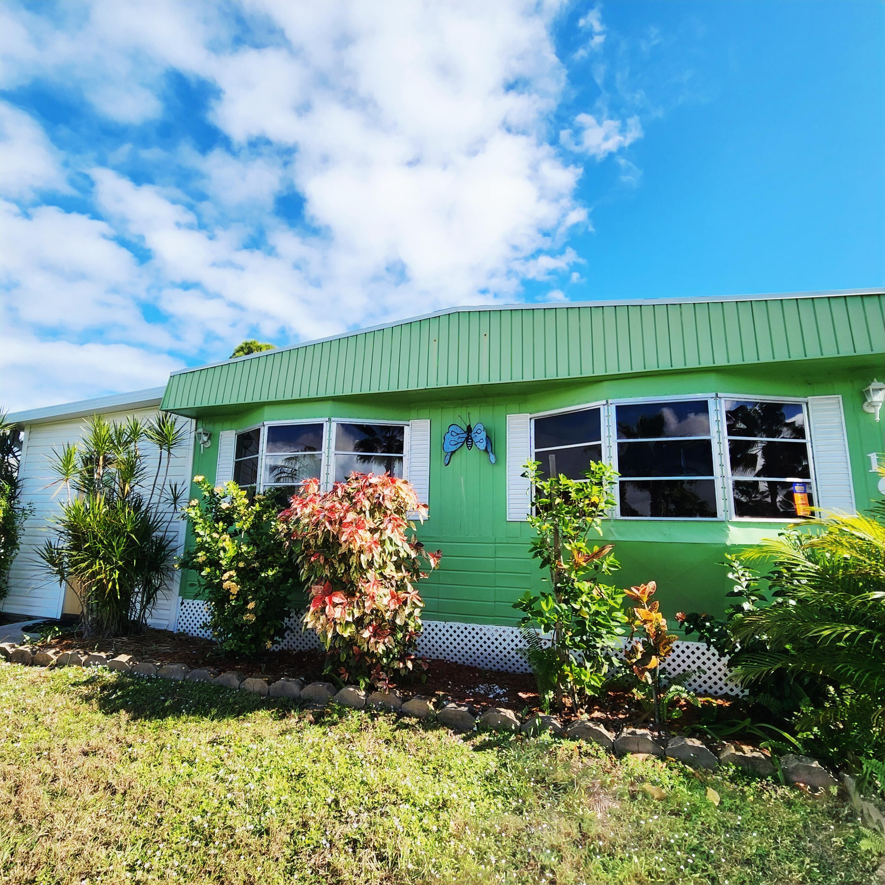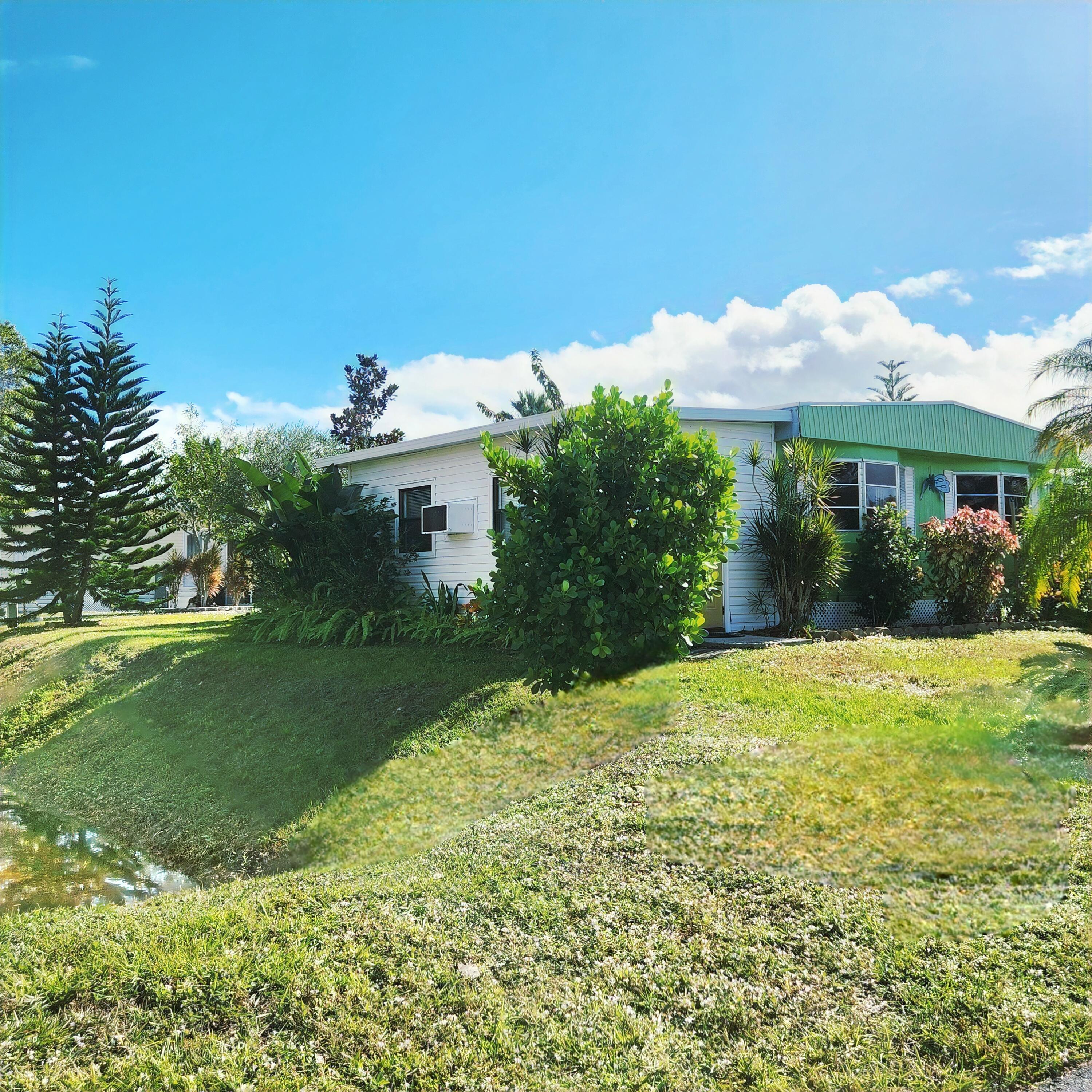 Furnished 2 bed/2 bath w/ a beautifully renovated, large, well lit, fully enclosed Florida Room that serves as an extra room/den/office & more! Great Lot w/ tropical vibe, canal views w/ small yard space for Gardening & Pets. Master bedroom features an en-suite bathroom & both bedrooms offer generous closet space. Large Shed for ample Storage! 2019 AC has been fully serviced in 2025. PRIME LOCATION; close to the beach, the mall, grocery stores, diners, coffee shops, post office, banks, pharmacy, hospitals & more. Lot lease of 842.53 includes lawn care, trash, private, free golf course, heated pool, pickleball, tennis, shuffleboard, bocce, gym, library, cards, Mahjong, bible study, wood workshop, dinners, parades, dances & more!