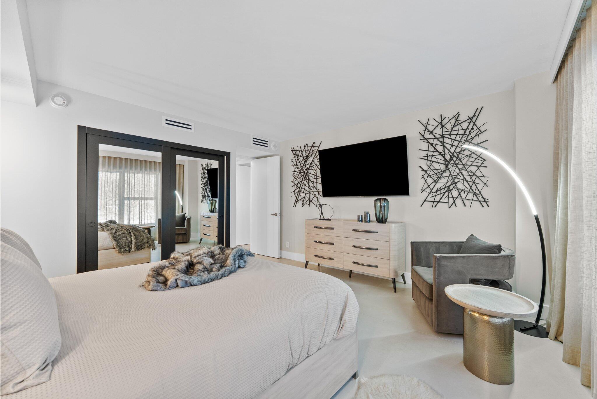 Completely RENOVATED 2BR/2BA condo offering serene, upscale living with beautiful views of LAKE BOCA. Features include a sleek modern kitchen with CUSTOM Italian cabinetry, premium BOSCH appliances, custom built-ins, and a hidden full-size washer/dryer. The owner's suite showcases custom draperies, designer details, a sitting area, OVERSIZED walk-in closet with French doors, and a SPA-STYLE BATH with custom lighting and mirrors. Guest room and bath reflect the same HIGH-END finishes. Enjoy lake views and an easy WALK TO THE BEACH and the iconic THE BOCA RATON. Renovation includes solid wood doors, new plumbing, new A/C and ducts, and large-format porcelain tile. Lake House offers concierge, gym, club room, lakeside pool, and lush coastal grounds. BOAT DOCK AVAILABLE FOR PRIVATE PURCHASE.