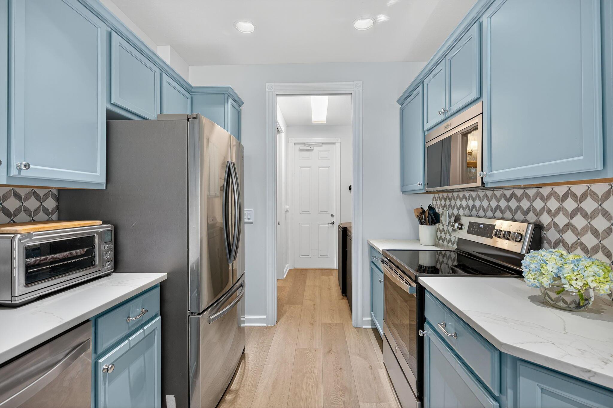 Welcome to this beautifully updated, Key West-style end-unit townhome in Mallory Creek. From the moment you walk in, you'll feel how bright, open, and inviting the home is--the extra windows bring in an abundance of natural light and give the entire space an airy, relaxed feel.This home was professionally refreshed in 2024 with designer-selected upgrades throughout, including stunning coastal blue cabinetry, quartz countertops, a beautifully tiled backsplash, updated flooring, and fresh interior paint. The kitchen, powder bath, and laundry room were all updated in 2024, and new ceiling fans were added in every room. Additional enhancements include new washer/dryer, plantation shutters, and updated plumbing fixtures. Every detail feels intentional, creating a clean, coastal feel.